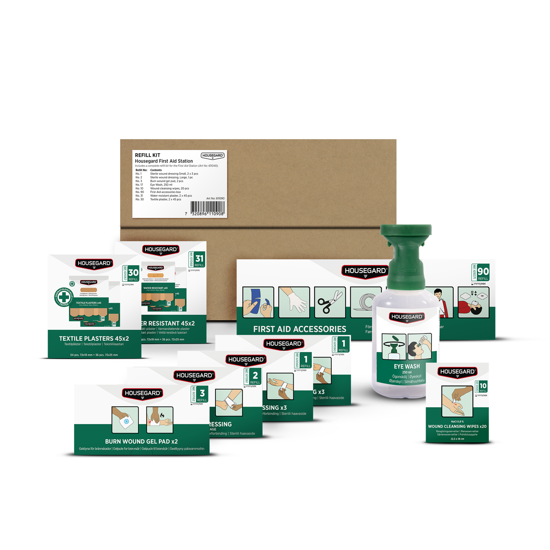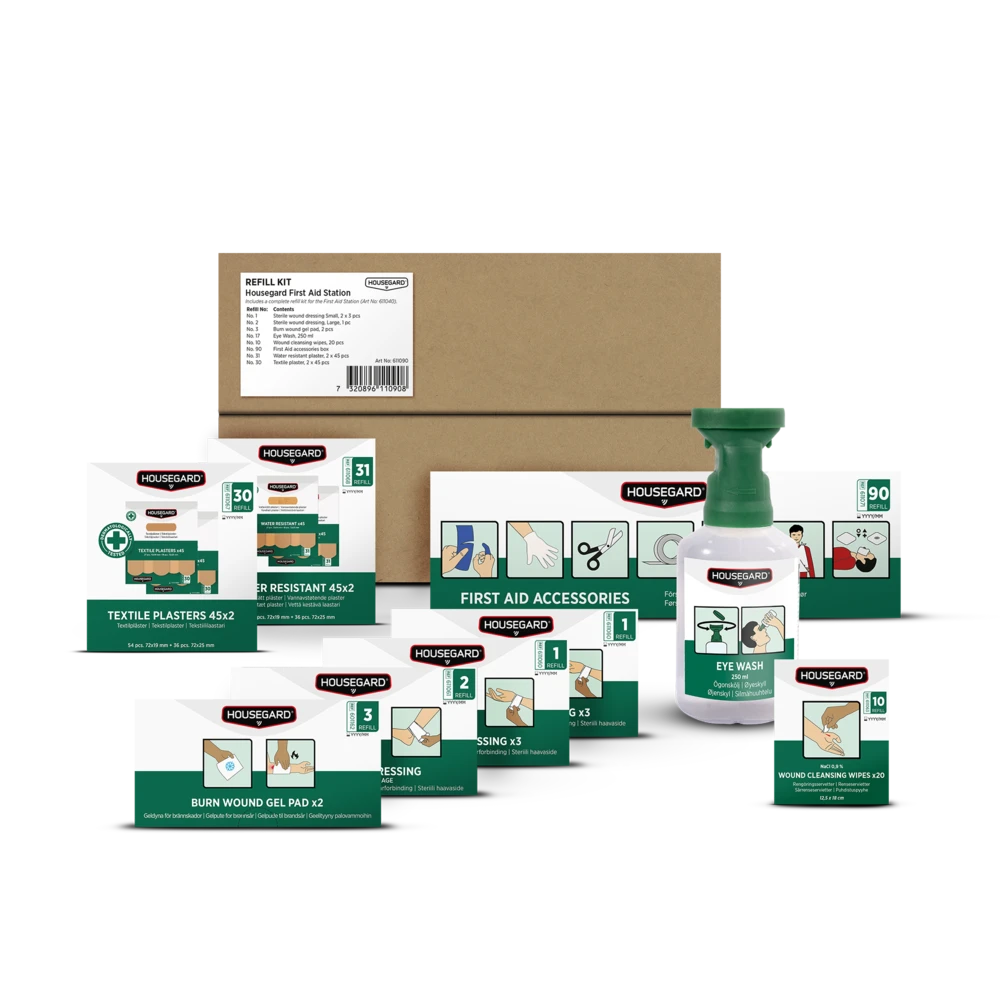 Komplet refillpakke til Housegard Førstehjælpsstation.
