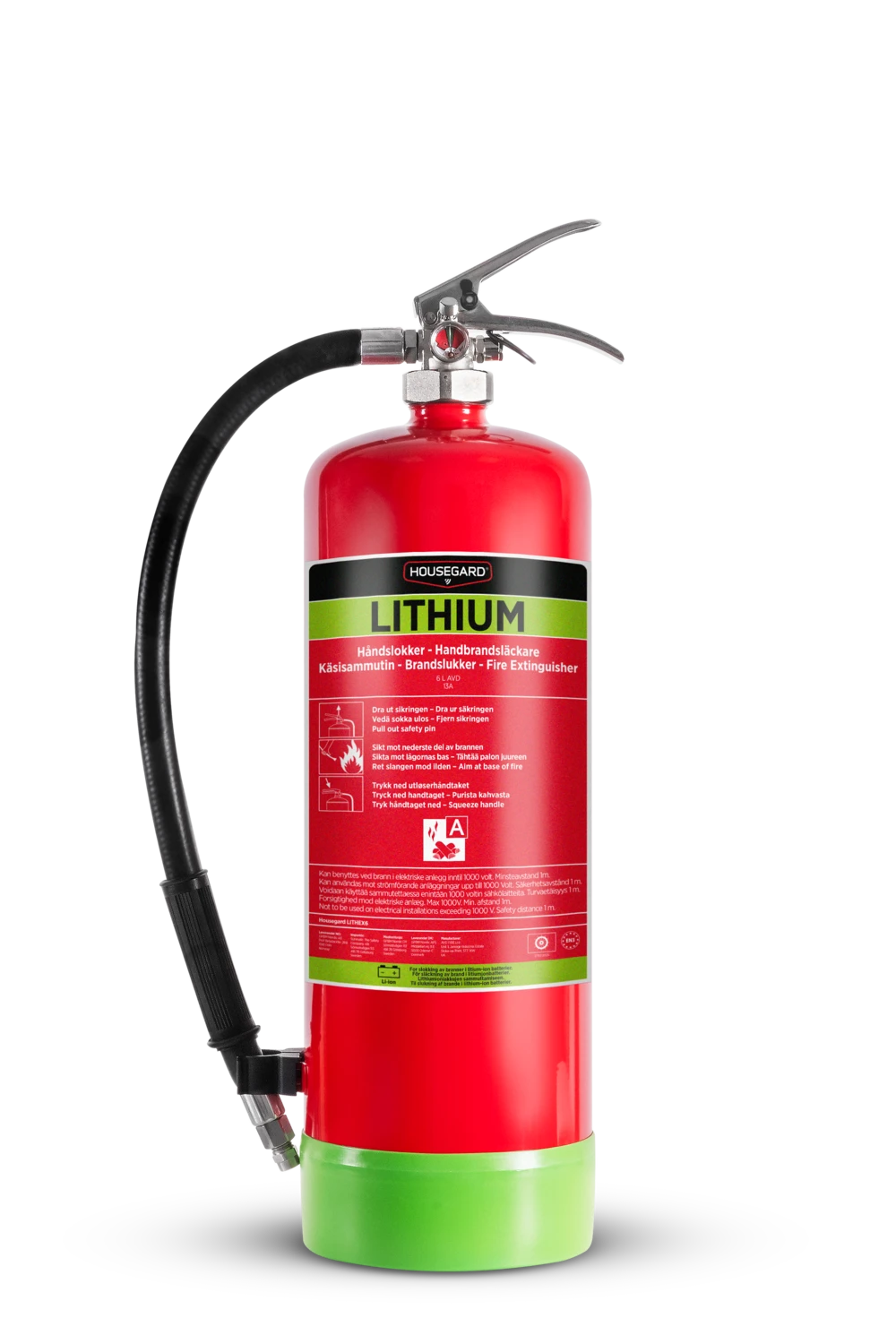 Housegardin 6 litran AVD-sammutin on suunniteltu litiumioniakkujen ja kiinteiden metallien paloihin sekä palon rajoittamiseen. AVD on ainoa sammutusaine, joka on läpäissyt riippumattomat kolmannen osapuolen testit litiumioniakkupalojen sammuttamisessa.