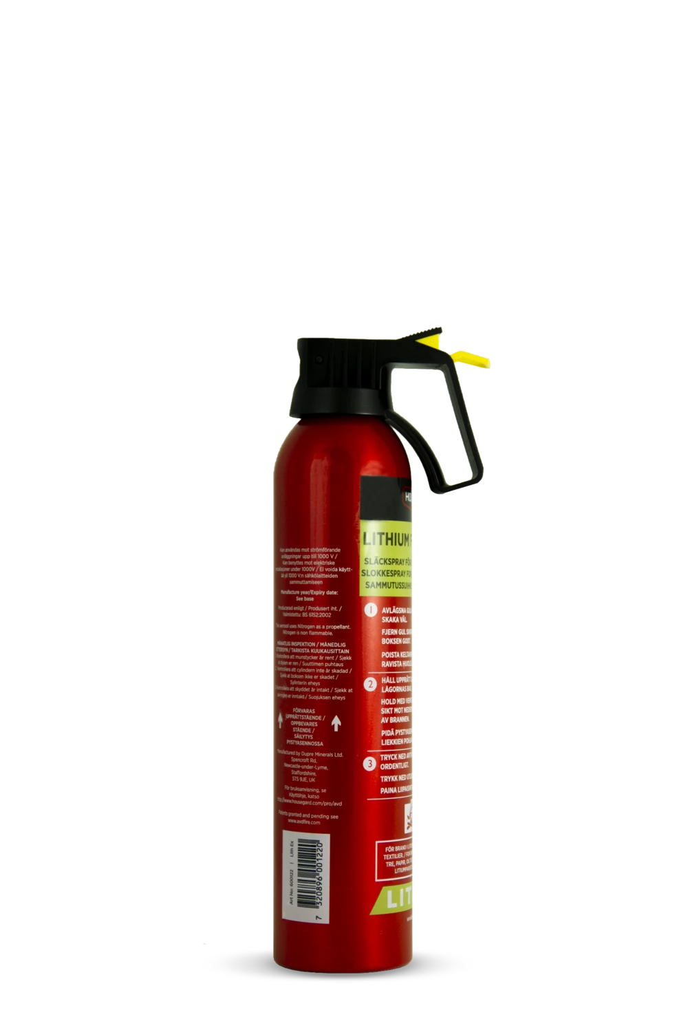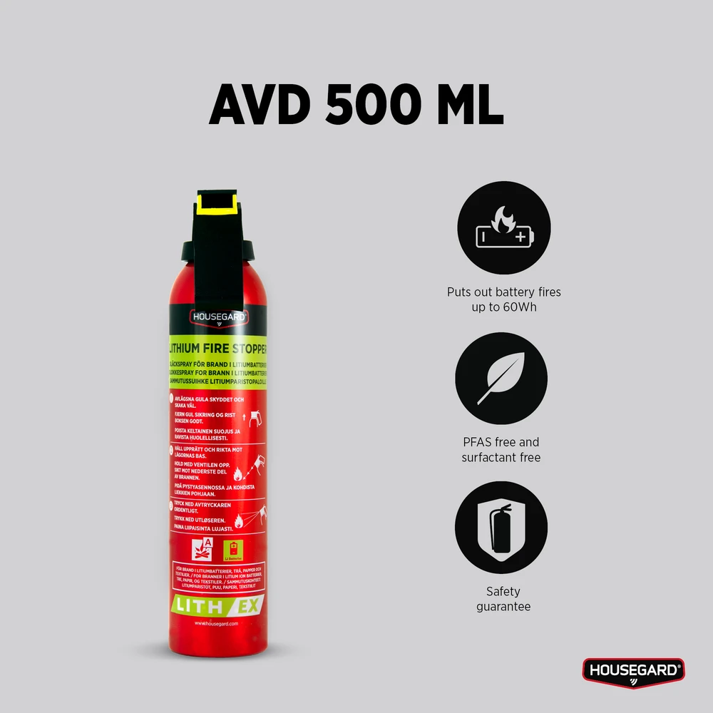 Sammutusspray sisältää uutta vallankumouksellista sammutusainetta AVD:tä. Lisääntyneet ongelmat akkupaloissa ja -räjähdyksissä johtivat AVD kehittämiseen, minkä ansiosta palot litium-ioni-akuissa voidaan nyt sammuttaa tehokkaasti.