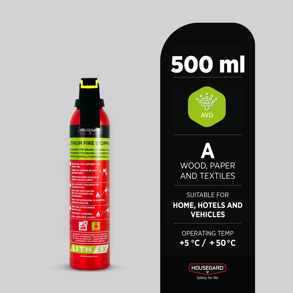 Lith-EX soveltuu erinomaisesti koteihin, hotellihuoneisiin, ajoneuvoihin, joukkoliikenteeseen, lentokoneisiin, veneisiin, asuntovaunuihin, matkailuautoihin ja erityisiin tulipaloihin, joissa pitää toimia alkuvaiheessa ennen kuin ne kehittyvät isoksi tulipaloksi.