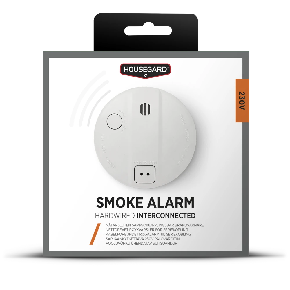 Sarjaan kytkettävä optinen palovaroitin, joka liitetään 230V verkkoon akkuvarmistuksella. Kiinteä yhteys jopa 38 laitteeseen. Hälyttää yksi, hälyttää kaikki – näin sinua varoitetaan missä tahansa, kun mahdollinen tulipalo syttyy.
