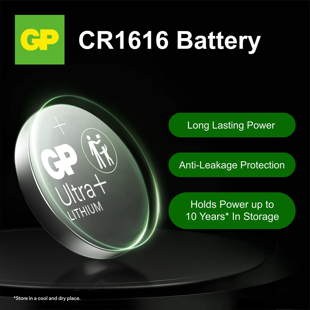 GP litium CR1616 nappiparistot tarjoavat pitkäkestoista tehoa ja energiaa, johon voit luottaa. Edistynyt tiivistystekniikka vähentää itsepurkautumista ja estää vuotoja. Paristo on suunniteltu vaativiin olosuhteisiin ja toimii luotettavasti -20 °C:sta +60 °C:een. Vuotamattomaksi kehitetty rakenne suojaa laitteesi ja lapsiturvallinen pakkaus lisää käyttöturvallisuutta.