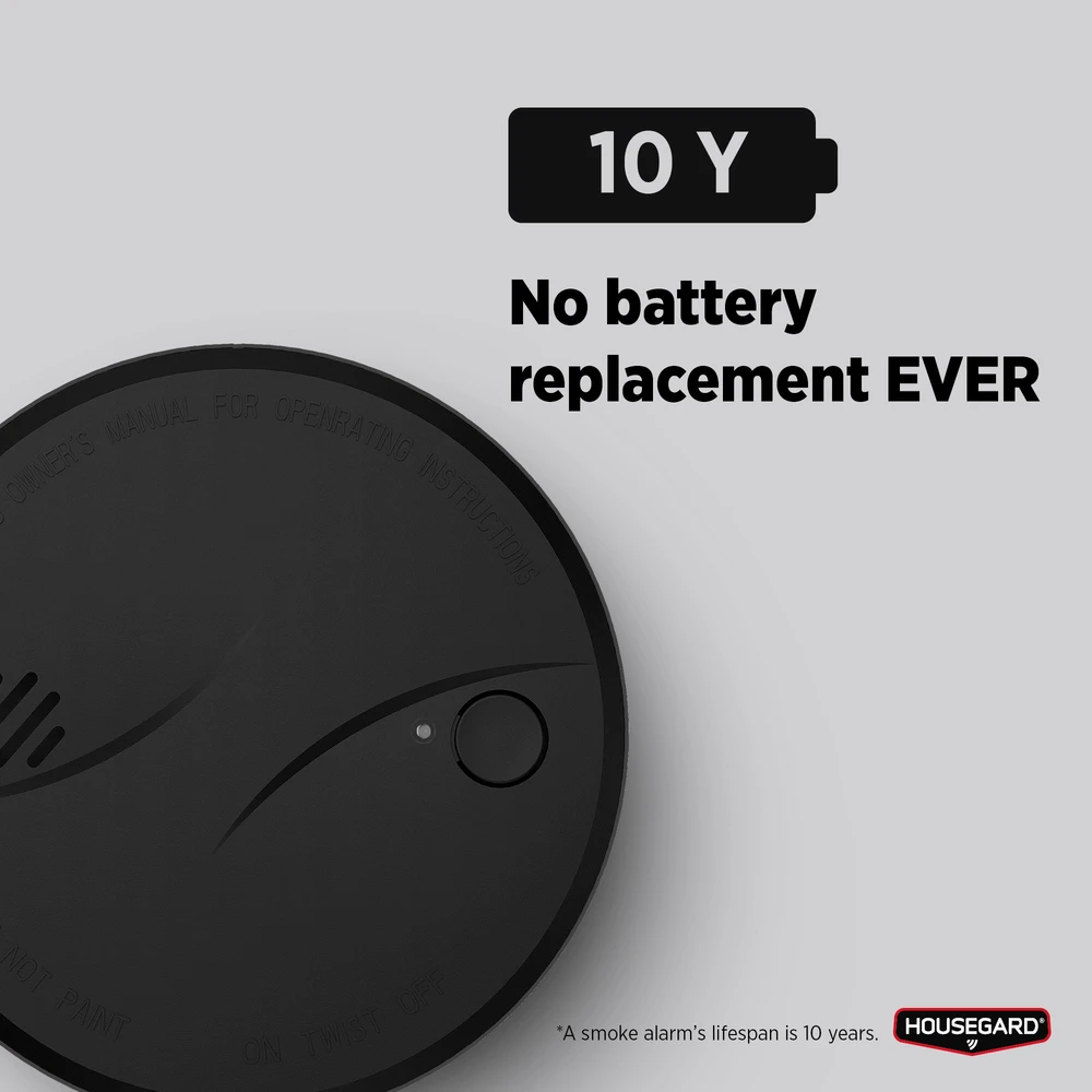 Housegard Black on tyylikäs, mattamusta palovaroitin, joka yhdistää muotoilun ja turvallisuuden. Sisäänrakennetun 10 vuoden pariston ansiosta sinun ei tarvitse huolehtia paristonvaihdosta. Sopii sinulle, joka haluat mustan palovaroittimen, joka sulautuu moderniin sisustukseen.