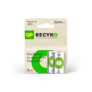 Une batterie C NiMH rechargeable avec des caractéristiques écologiques qui pèsent moins sur l'environnement et sur votre porte-monnaie. La batterie est préchargée et prête à l'emploi, et grâce à son faible taux d'autodécharge, elle peut rester chargée jusqu'à 50% après 12 mois. Avec une température de fonctionnement comprise entre -20°C et +50°C, elle offre des performances fiables même dans des environnements extrêmes. Plus de 90 % de l'ensemble de la batterie, y compris la boîte, peuvent également être recyclés.