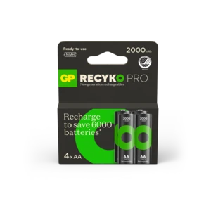 Une pile AA NiMH rechargeable avec des attributs de haute performance et une durée de vie massive de 1500 cycles de recharge, ce qui la rend idéale pour les appareils à forte consommation d'énergie. Cette batterie de la gamme GP ReCyko Pro réduit considérablement l'utilisation de la batterie à usage unique, est préchargée et prête à l'emploi. De plus, elle peut rester chargée jusqu'à 70% après 60 mois grâce à son taux d'autodécharge incroyablement bas.