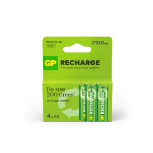 GP Recharge è una gamma progettata per sfidare l'uso delle batterie usa e getta. La combinazione di potenti batterie ricaricabili e caricabatterie di facile utilizzo a un prezzo accessibile dovrebbe far reagire anche il più ostinato utilizzatore di batterie usa e getta. Risparmiare denaro riducendo i consumi. Perché comprare 200 batterie quando ne basta una?*
