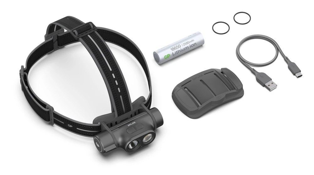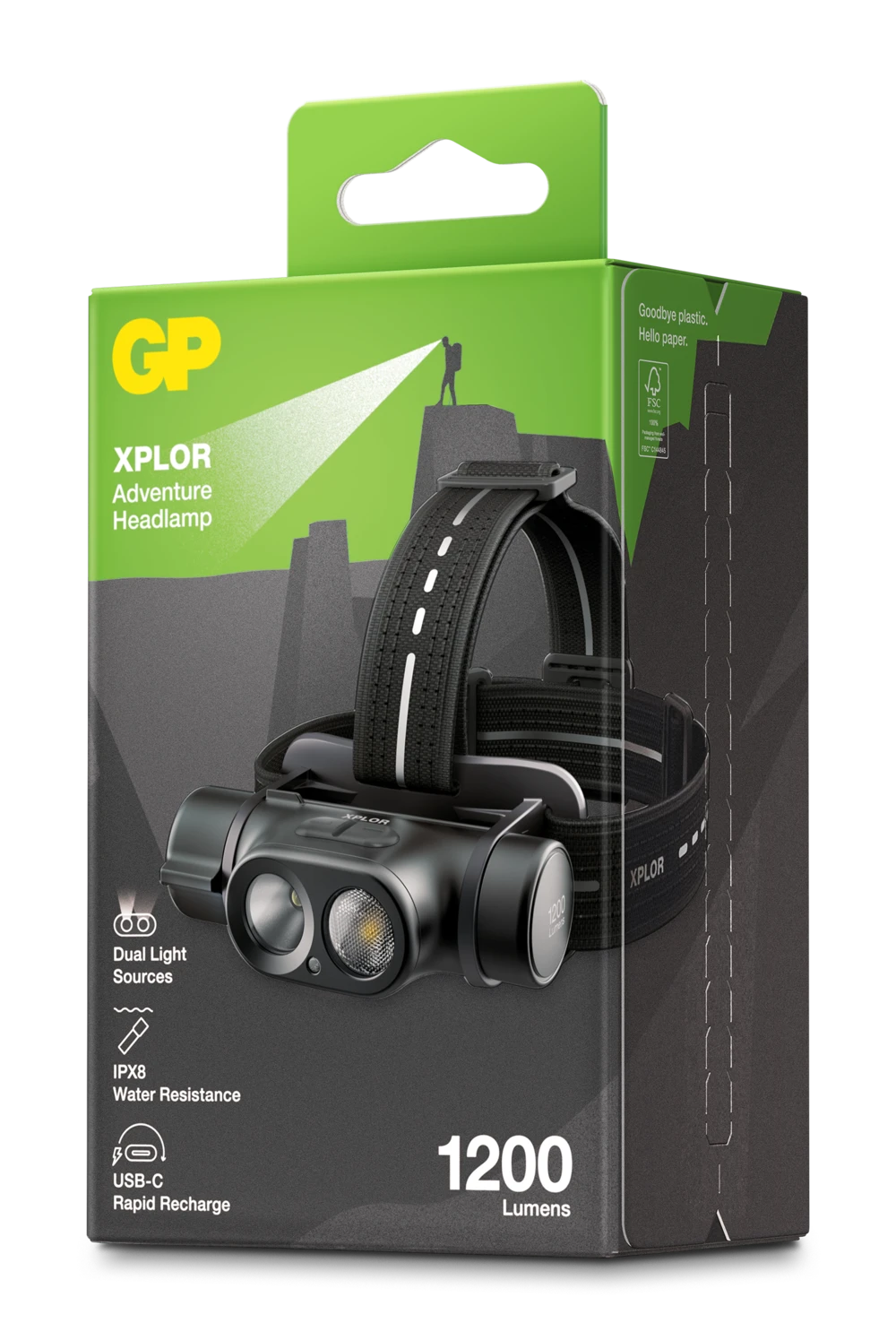 GP XPLOR PHR19 hodelykt er lampen for deg som har tøffe krav. Lysstyrken er på totalt 1200 lumen og lyser enkelt opp mørket i opptil 110 meter. Kombinasjonen av to linser lar deg regulere frontlys- og fokusfunksjonene separat for å skape det optimale lyset for hver enkelt oppgave. Med 100 grader bred spredningsvinkel og muligheten til å vinkle lampehodet 160 grader vertikalt, kan du enkelt justere lysbildet, selv om du har på deg hjelm eller hatt. Hodelykten er IPX8-klassifisert, noe som betyr at den er vanntett selv under trykk og kan derfor senkes i vann uten å bli skadet. Lampehodet er laget helt i slitesterk aluminium og er meget robust, så det tåler støt og fall fra opptil 1,5 meter. Med en batterilevetid på opptil 38 timer er dette den perfekte hodelykten for deg som elsker villmarken eller har et krevende yrke. Dette er en hodelykt som er utviklet for å være så brukervennlig som mulig og har strømindikator som viser batterinivå, aktiv overopphetingsbeskyttelse og låsefunksjon som hindrer at lampen slås på ved en feiltakelse. Selv om GP XPLOR PHR19 kommer med et oppladbart litium-ion-batteri, er det kompatibelt med både oppladbare og engangsbatterier. Dette for at du aldri skal gå tom for batteristrøm og lampen ikke kan brukes. Leveres med et slitesterkt hjelmfeste som gjør at lampen kan festes til sykkel-, klatre- eller arbeidshjelmen.