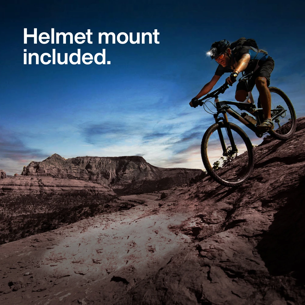 Kan brukes på toppen av hjelm eller lue Med 100 grader bred spredningsvinkel og muligheten til å vinkle lampen 160 grader vertikalt, vil lyset alltid kunne rettes akkurat dit du vil ha det. Dette gjør at du kan bruke hjelm eller lue under hodelykten, lyset vil fortsatt være optimalt.