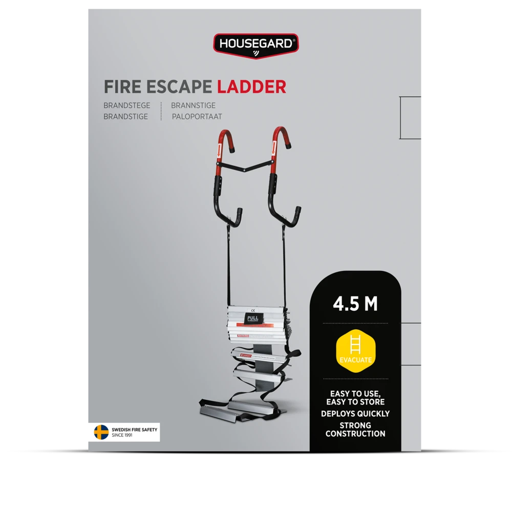Housegard brannstige er enkel å oppbevare og bruke. Oppbevares lett tilgjengelig i et skap eller under sengen for å kunne tas frem ved behov. Housegard brannstige er utstyrt med kraftige kroker som henges over vinduskarmen ved evakuering.