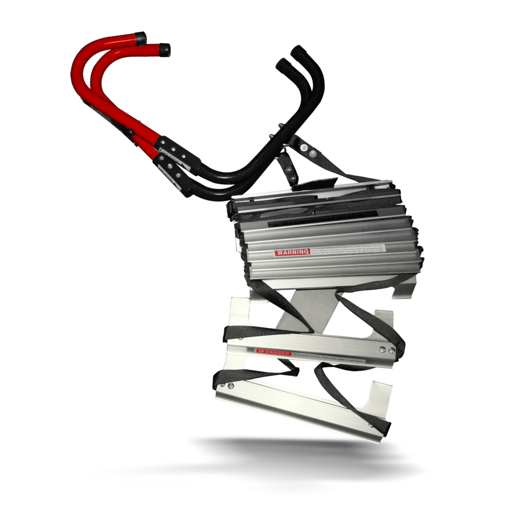 Stegene i aluminium er sklisikre, og gjør evakueringen sikrere. Anbefalt belastning er maks. 200 kg (testet og godkjent for opptil 450 kg).