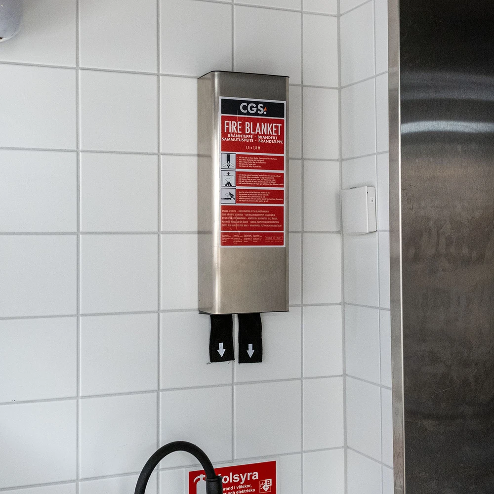 CGS brannteppe med deksel i rustfritt stål. Brannteppet slukker branner raskt og effektivt, og er beskyttet av et metalldeksel som gjør at den er enkel å vedlikeholde. Egner seg derfor godt i miljøer hvor det legges stor vekt på god hygiene og renslighet.| Statistikknummer | 5911909990 |