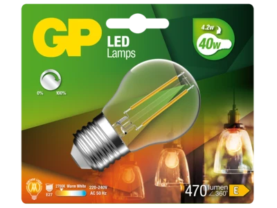 GP LED Filament globlampa mini, E27, DIM, 4,2W (40W), 470lm, 778197-LDCE1