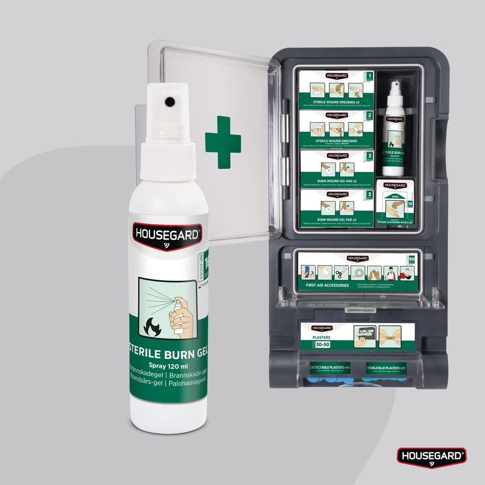 Vattenbaserad brännskadegel som kyler, lindrar och minskar risken för vävnadsskador vid brännskador. Gelen appliceras direkt på huden och ger snabb smärtlindring.Den är framtagen som refill till första hjälpen-stationer inom industri, kök och andra miljöer där risken för heta ytor, ånga eller vätskor är hög.