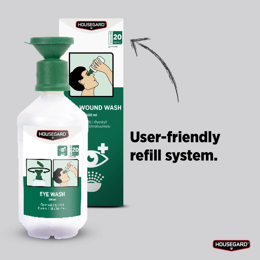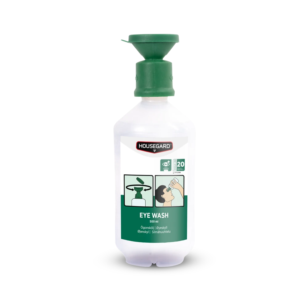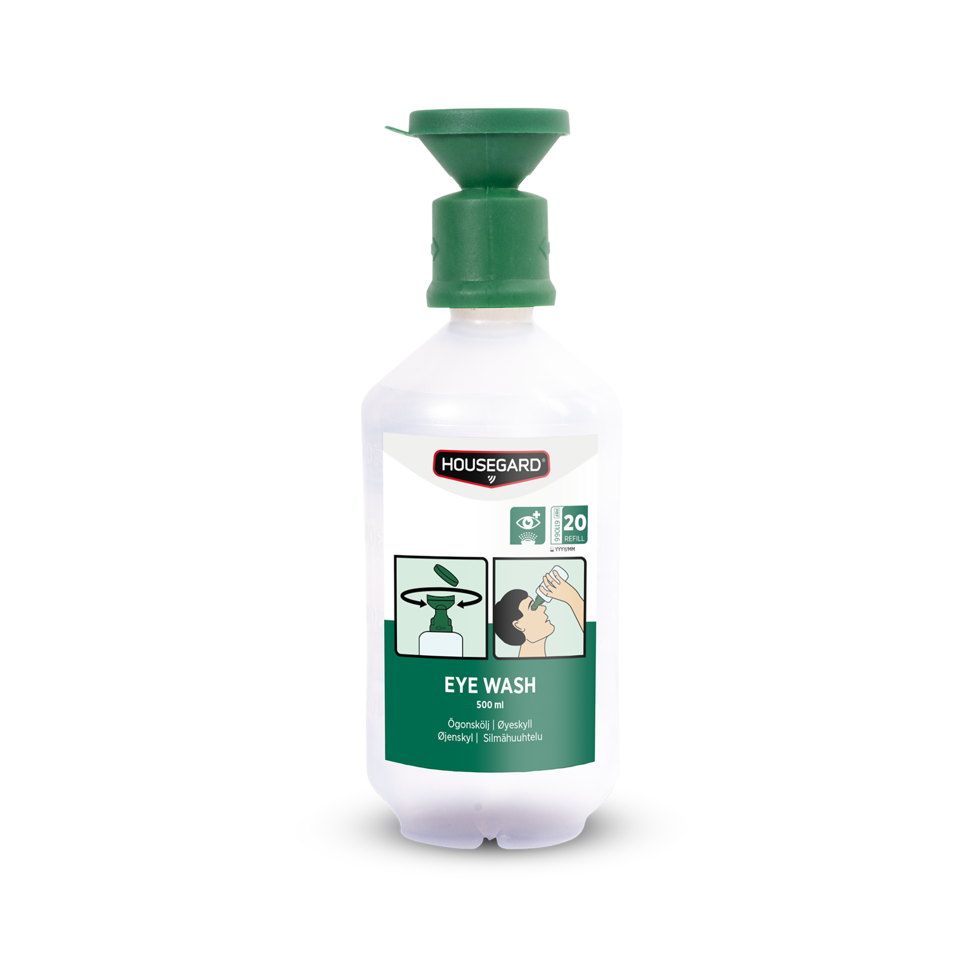Stor buffrad ögondusch (500 ml) som ger längre och mer effektiv sköljning vid kontakt med kemikalier. Den fosfatfria lösningen neutraliserar både syror och baser, och den automatiska öppningsfunktionen gör att flaskan är redo att användas direkt. Lämplig som refill i första hjälpen-stationer för industri, verkstad och laboratorier. Ögonsköljflaskorna är avsedda för uppvärmda lokaler där de håller rumstemperatur (ca 18–25 °C) för omedelbar användning, enligt kraven i AFS 1999:7.