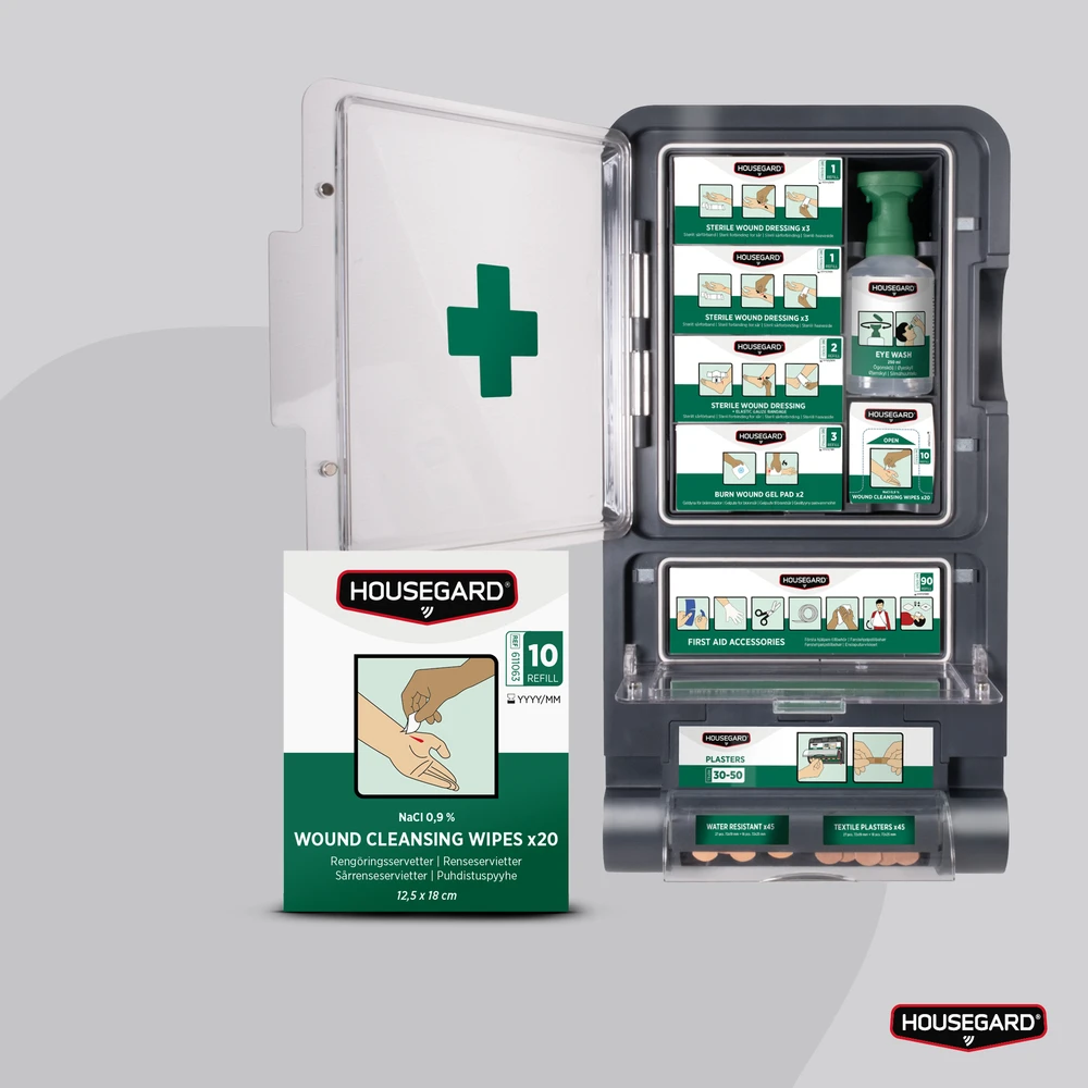 Sterila sårtvättare med 0,9 % koksaltlösning för skonsam rengöring av hud och sår. Servetterna är individuellt förpackade för att säkerställa högsta hygien och är perfekta för att avlägsna smuts och bakterier innan ett förband appliceras.Idealisk refill till första hjälpen-stationer inom industri, kontor och offentliga miljöer.