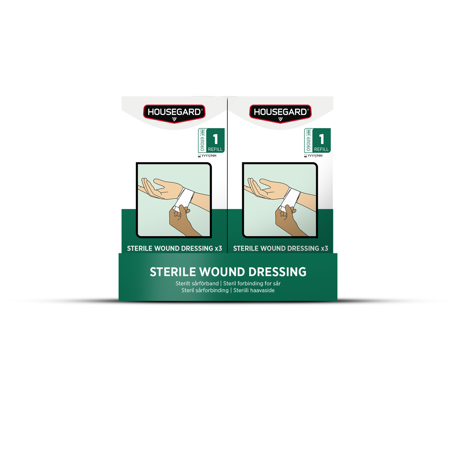 Sterilt sårförband i 3-pack för snabb och hygienisk behandling av mindre till medelstora sår. Varje förband är individuellt förpackat med en absorberande kompress som skyddar såret mot smuts och bakterier. Den självhäftande ytan gör förbandet enkelt att applicera och bekvämt att bära.Passar som refill i första hjälpen-stationer på arbetsplatser, industrier och offentliga miljöer.