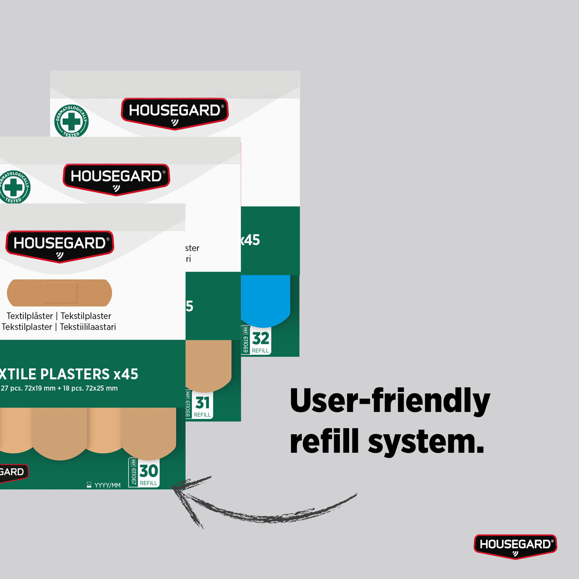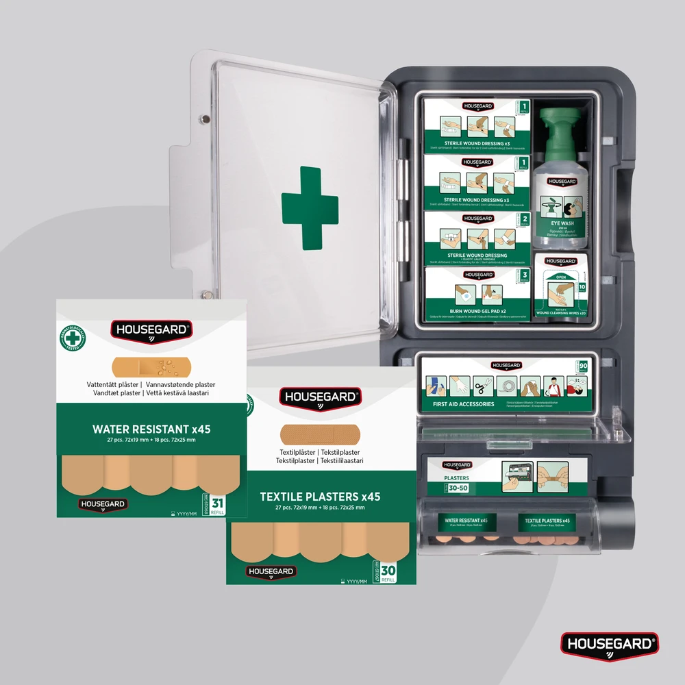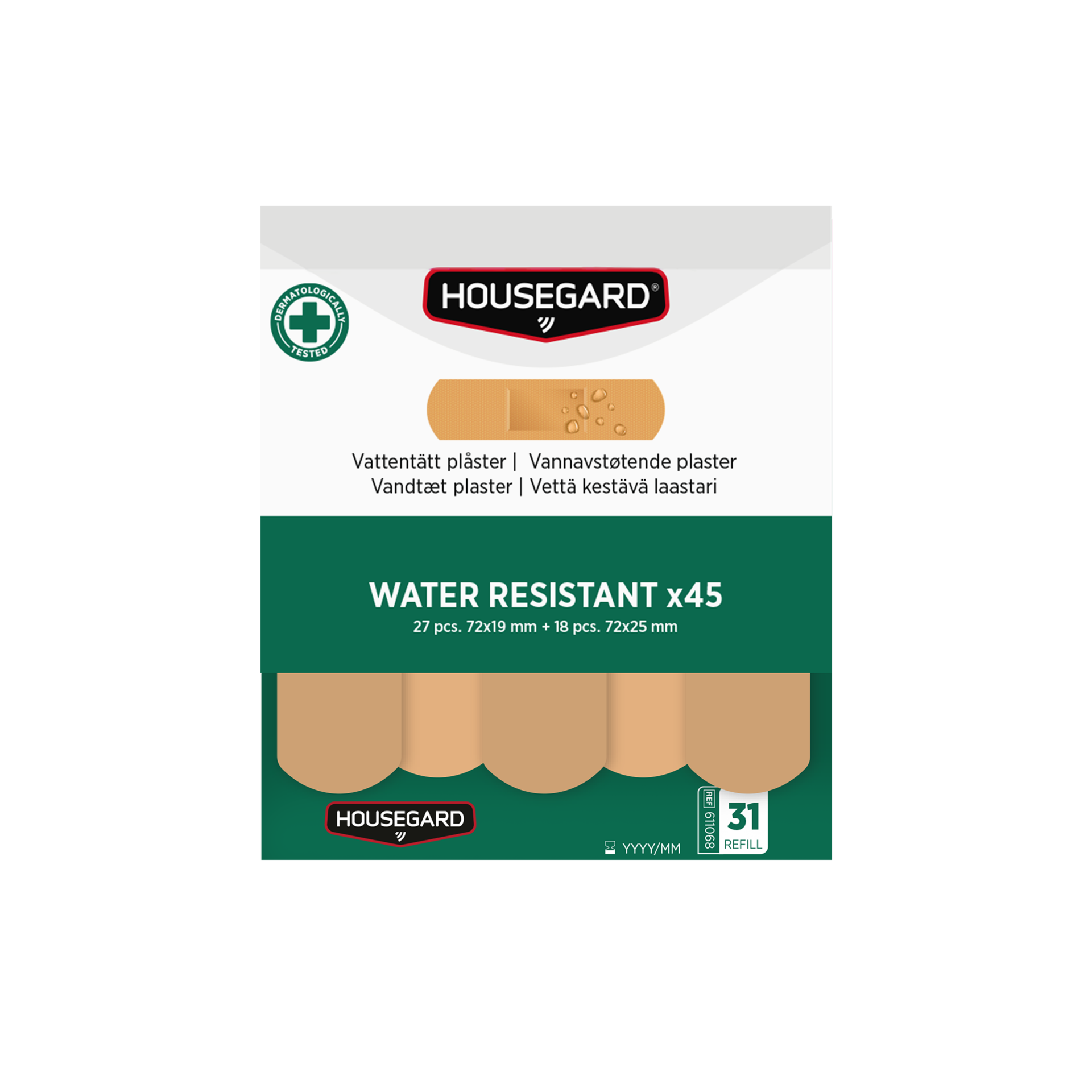 Vattentåliga plåster med hög vidhäftning som sitter kvar även i fuktiga och krävande miljöer. De skyddar mot vatten och smuts och är utformade för att ge säkert skydd vid arbete. Levereras som refill till Housegards och andra marknadsledande första hjälpen-stationer.