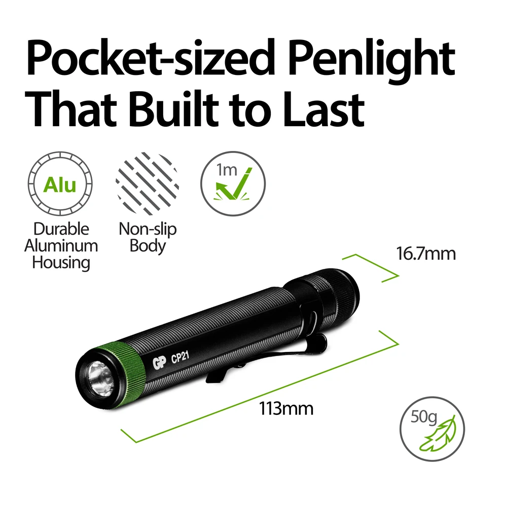 I GP Discovery-serien finder du slidstærke lygter med den sidste nye lysteknologi, der gør dem energibesparende, mens de stadig leverer et kraftfuldt lys. Alle GP Discovery-lygter har et hus af fly-aluminium, der gør dem meget robuste og slidstærke. Overfladen er riflet, hvilket bevirker, at lygten ligger skønt i hånden og letter betjeningen af fokusfunktionen.Vidste du, at Discovery-lommelygterne er kompatible med de genopladelige GP ReCyko-batterier?