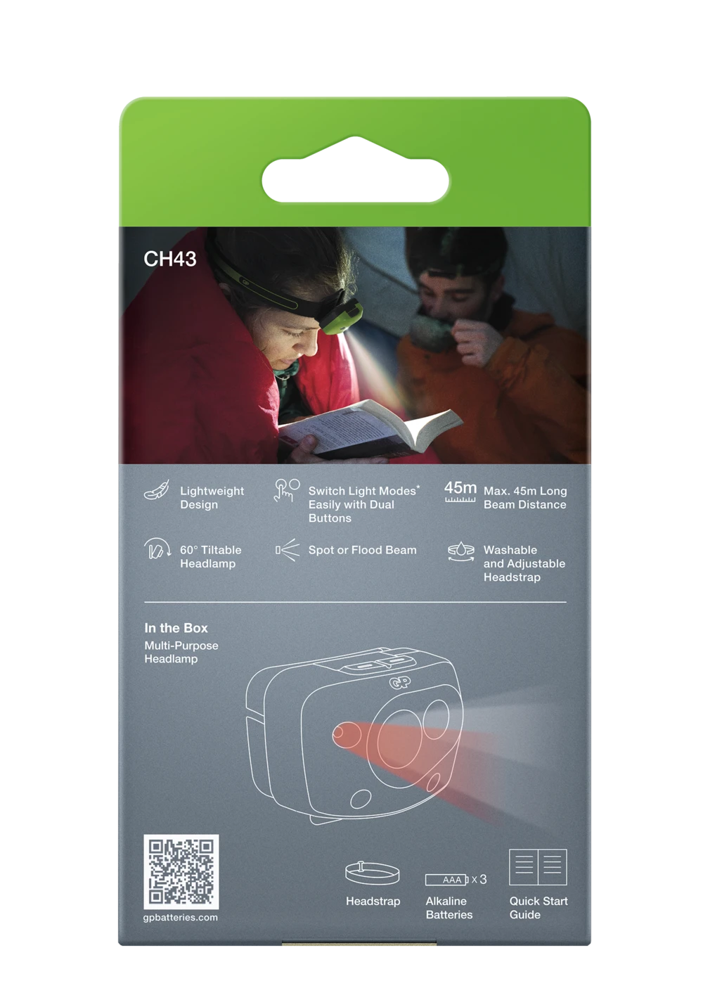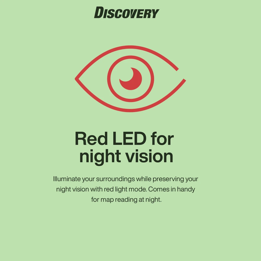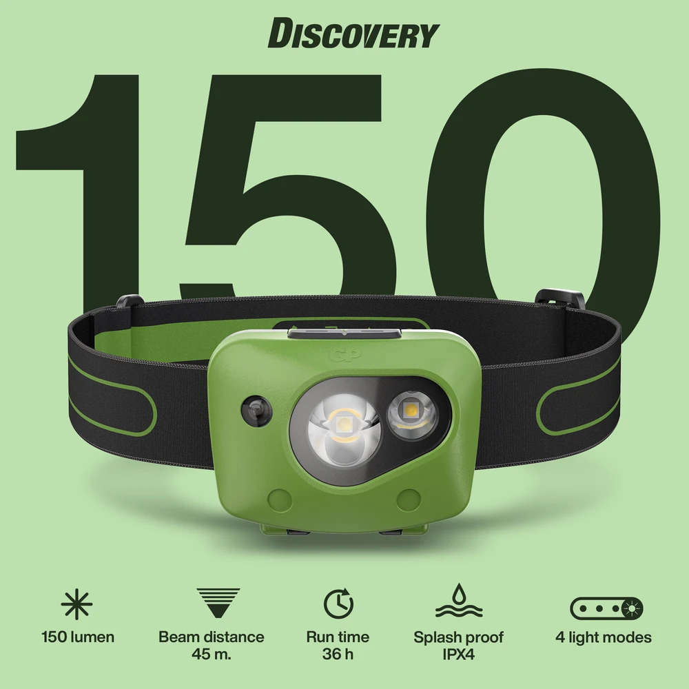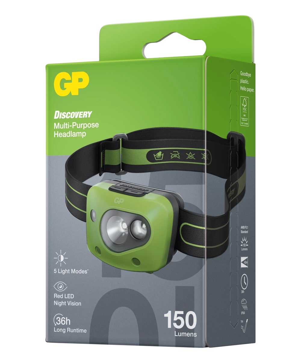 Pandelampen til friluftsentusiasten GP Discovery CH43 er en pandelampe, der er designet til alle hverdagssituationer, både indendørs og udendørs. Den har 3 lysstyrkeniveauer på op til 150 lumen og rødt LED-lys for at bevare nattesynet for både dig og andre omkring dig. Så du behøver ikke at blinde dem, du møder på hundeluftningen eller dine venner på campingturen. Da den er udstyret med fokus- og floodlys (spot & flood) kan den belyse både lange og brede områder på op til 45 meter.