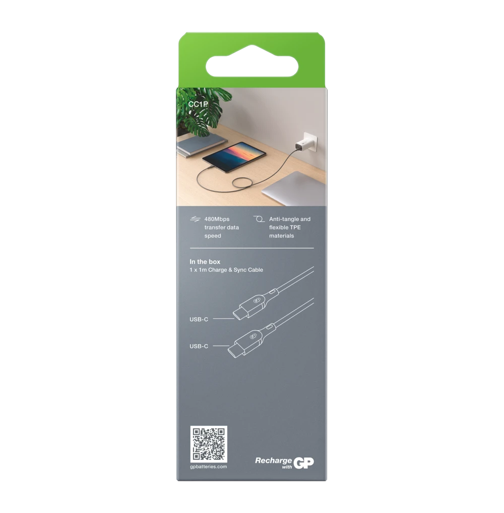GP Essential USB-kabel CC1P, USB-C til USB-C, 60W, 1 m