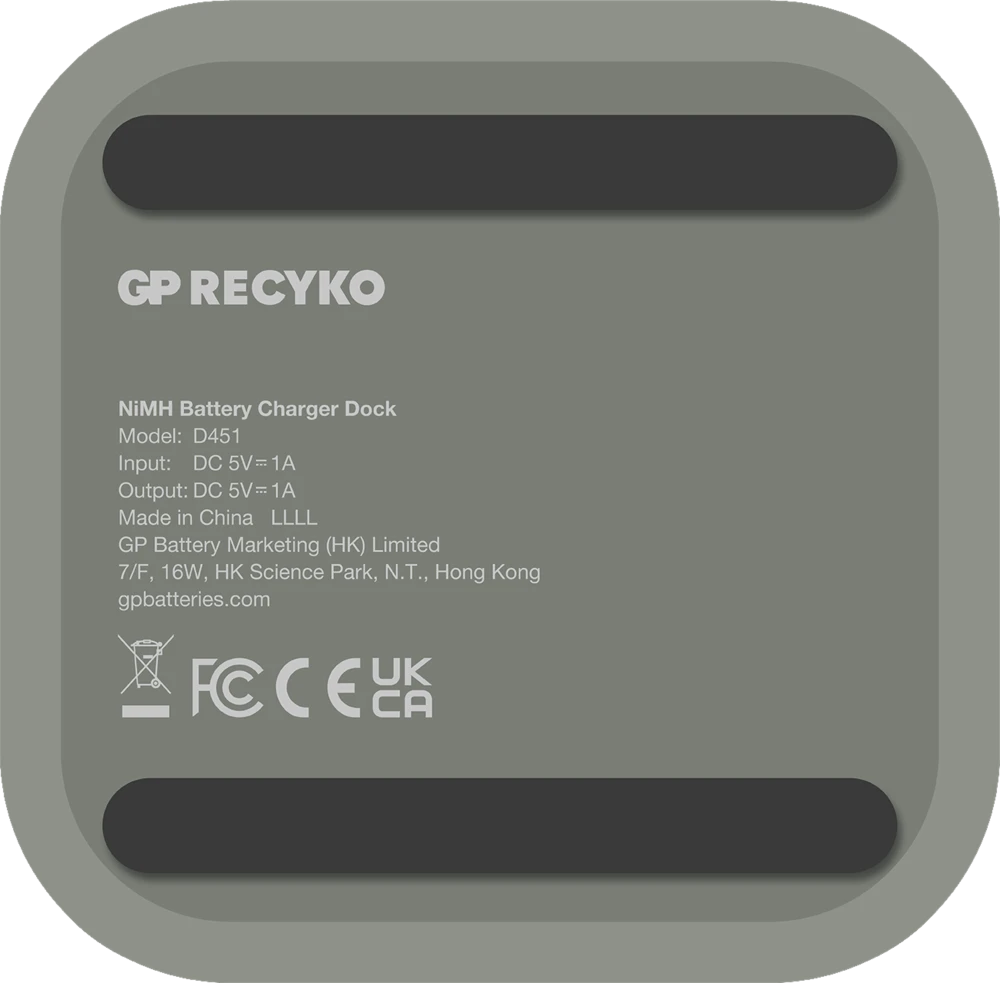 D451 on edistyksellinen telakka Recyko-laturillesi. Se tarjoaa tärkeimmät akkutiedot ja tekee lataamisen helpommaksi kuin koskaan ennen. Lataustelakka saa virtansa USB-yhteyden kautta ja sen ainutlaatuinen tilaa säästävä muotoilu pitää Recyko-akkulaturia pystysuunnassa. Tuloksena on ihanteellisen ratkaisu koti- ja toimistokäyttöön. Kun laturi on kytketty, telakan nestekidenäyttö ilmaisee kunkin akun lataustilan ja käyttöasteen, muistuttaen sinua siitä, milloin vanhat akut tulisi vaihtaa.