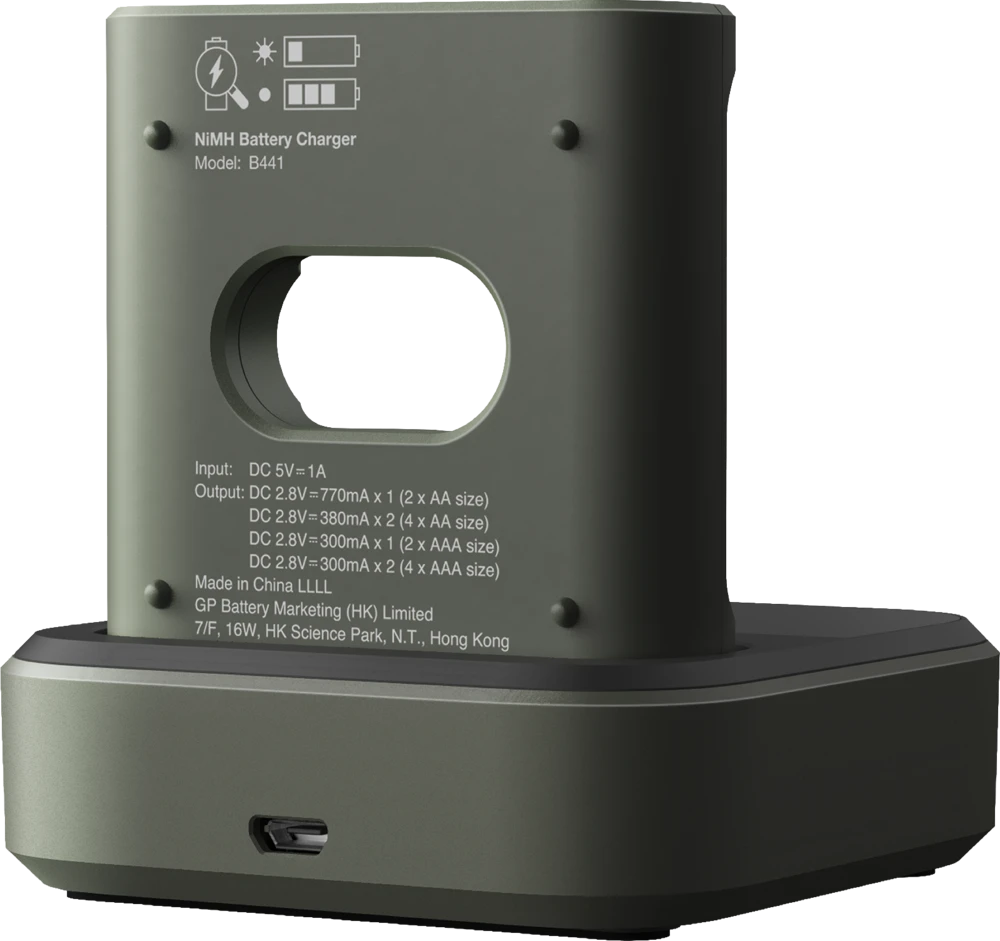 B441 lataa neljä 2100mAh AA-paristoa tai neljä 850mAh AAA-paristoa 3-6 tunnissa USB-liitännän kautta. Voit seurata latauksen etenemistä LED-merkkivalojen avulla, jotka näyttävät latauksen tilan samoin kuin jos laturiin on asetettu kertakäyttöisiä paristoja tai kelvottomia akkuja. Toinen turvaominaisuus on automaattinen virrankatkaisuajastin ja täyden latauksen -dV-tunnistus, joka auttaa välttämään ylilatausta, ylijännitettä ja oikosulkua sekä estämään akun vioittumista.