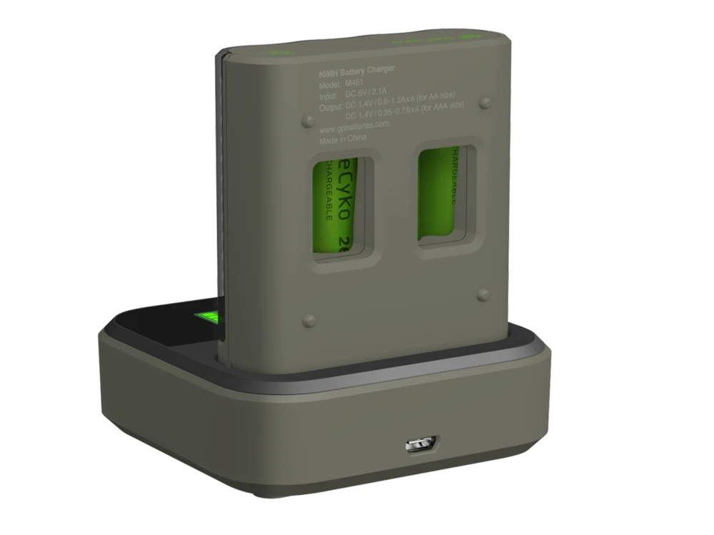 GP ReCyko Speed-laturi M451 (USB) ja lataustelakka D451, sis. 4x AA 2600mAh NiMH -akut