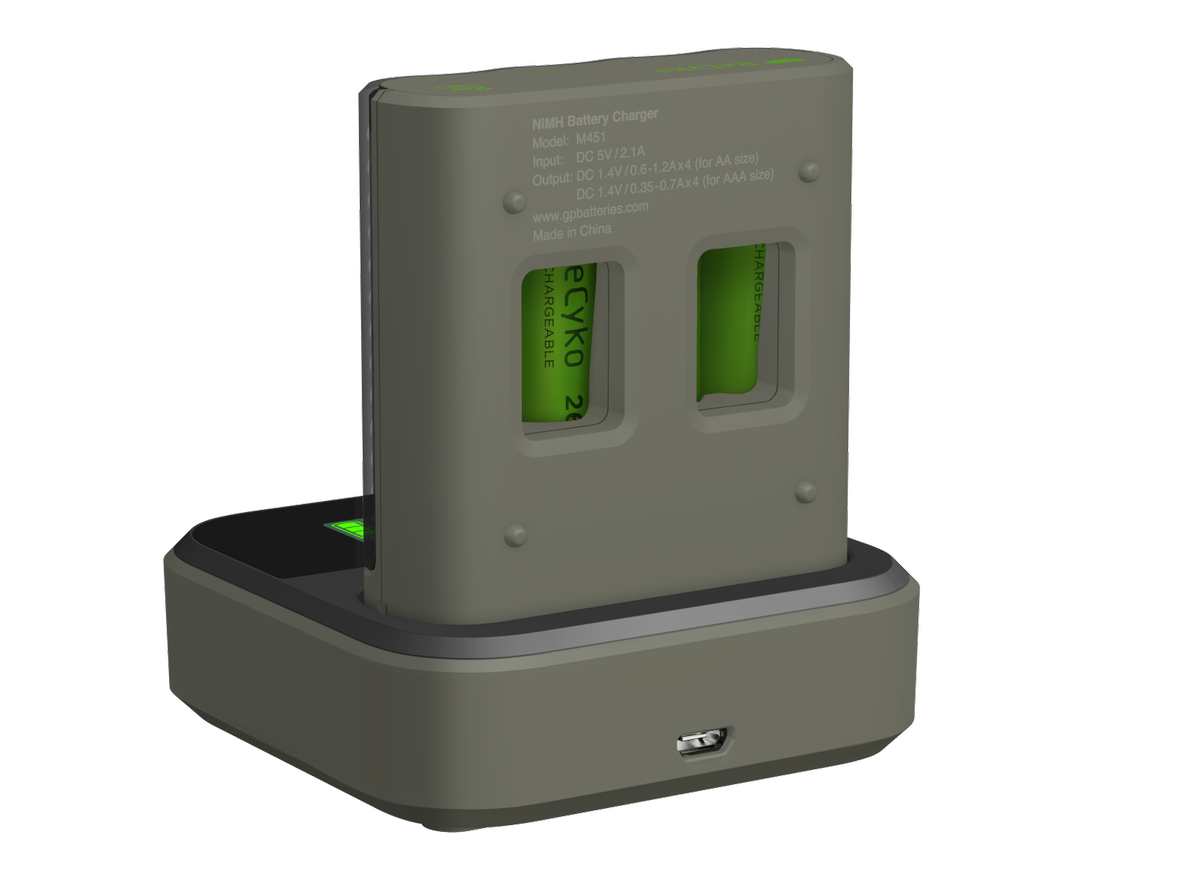 M451-laturilta kestää runsaat 2 tuntia kahden akun täyslataukseen tai vastaavasti 4 tuntia neljän akun (AA-paristot 2100mAh) täyslataukseen USB-liitännän kautta. Kaksiväriset LED-valot osoittavat lataustilan sekä sen, onko laturiin on asetettu kertakäyttöisiä paristoja tai kelvottomia akkuja. Toinen turvaominaisuus on automaattinen virrankatkaisuajastin ja täyden latauksen -dV-tunnistus, joka auttaa välttämään ylilatausta, ylijännitettä ja oikosulkua sekä estämään akun voittumista.