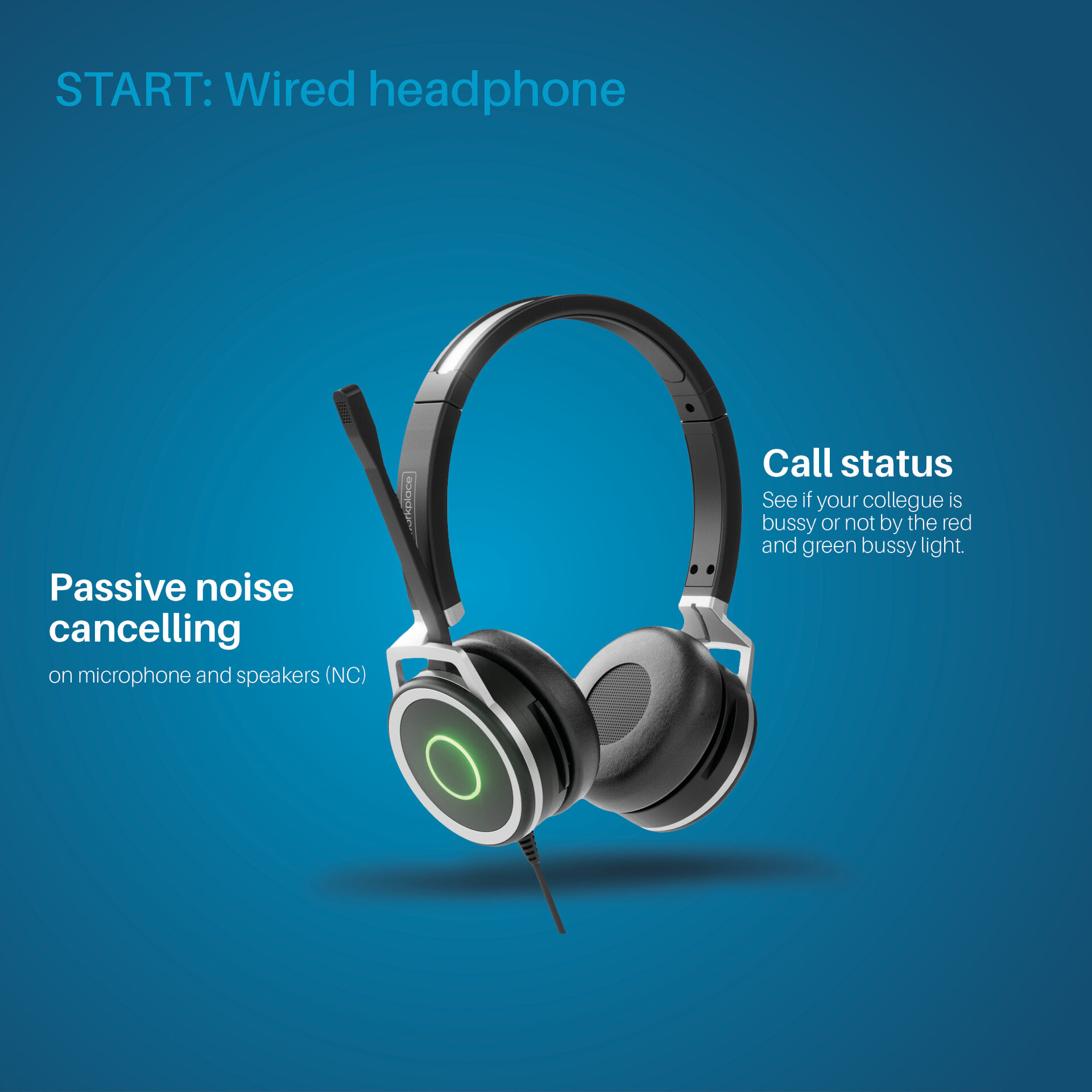 START Wired -kuulokkeet tarjoavat monenlaisia etuja, jotka mahdollistavat ammattimaisen viestinnän. Niihin kuuluvat melua vaimentava mikrofoni, jossa on melunvaimennus kristallinkirkasta puhelunsiirtoa varten, HD-superlaajakaistaäänen kaiuttimet, jotka tuottavat HiFi-stereoäänen, ja laadukkaan valmistuksen ansiosta, optimaalisen käyttömukavuuden.