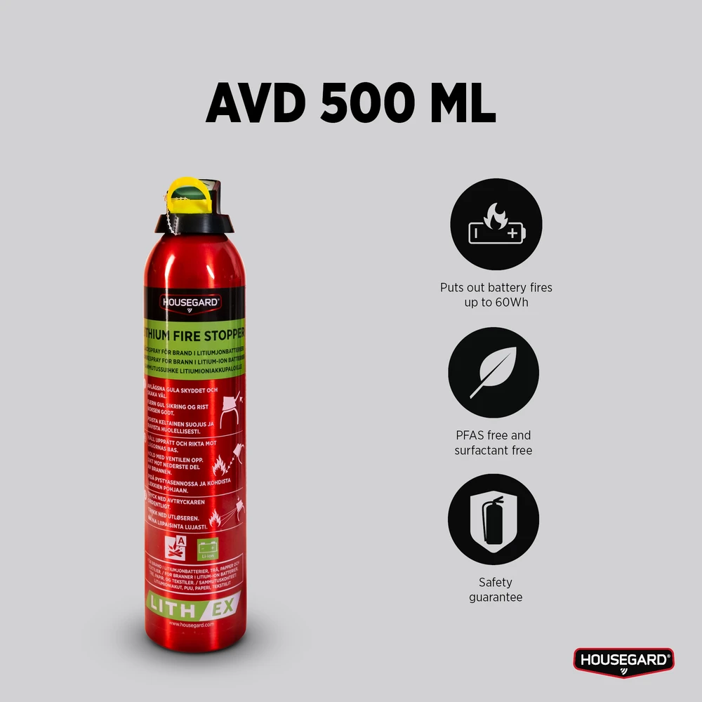 Tuote sisältää AVD-sammutusaineen, joka perustuu vermikuliittiin. Käytettäessä AVD muodostaa suojaavan kerroksen, joka jäähdyttää ja kapseloi akkukennot, mikä auttaa rajoittamaan palon etenemistä ja vähentämään leviämisriskiä.