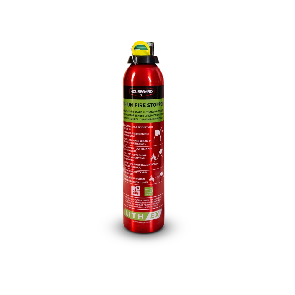 Lith-EX toimitetaan seinätelineen kanssa ja se on tarkoitettu kiinteään sijoitukseen latauspisteiden tai säilytystilojen läheisyyteen. Sammutussuihke toimii typellä ja se tulee säilyttää ja käyttää lämpötiloissa +5 °C – +60 °C.