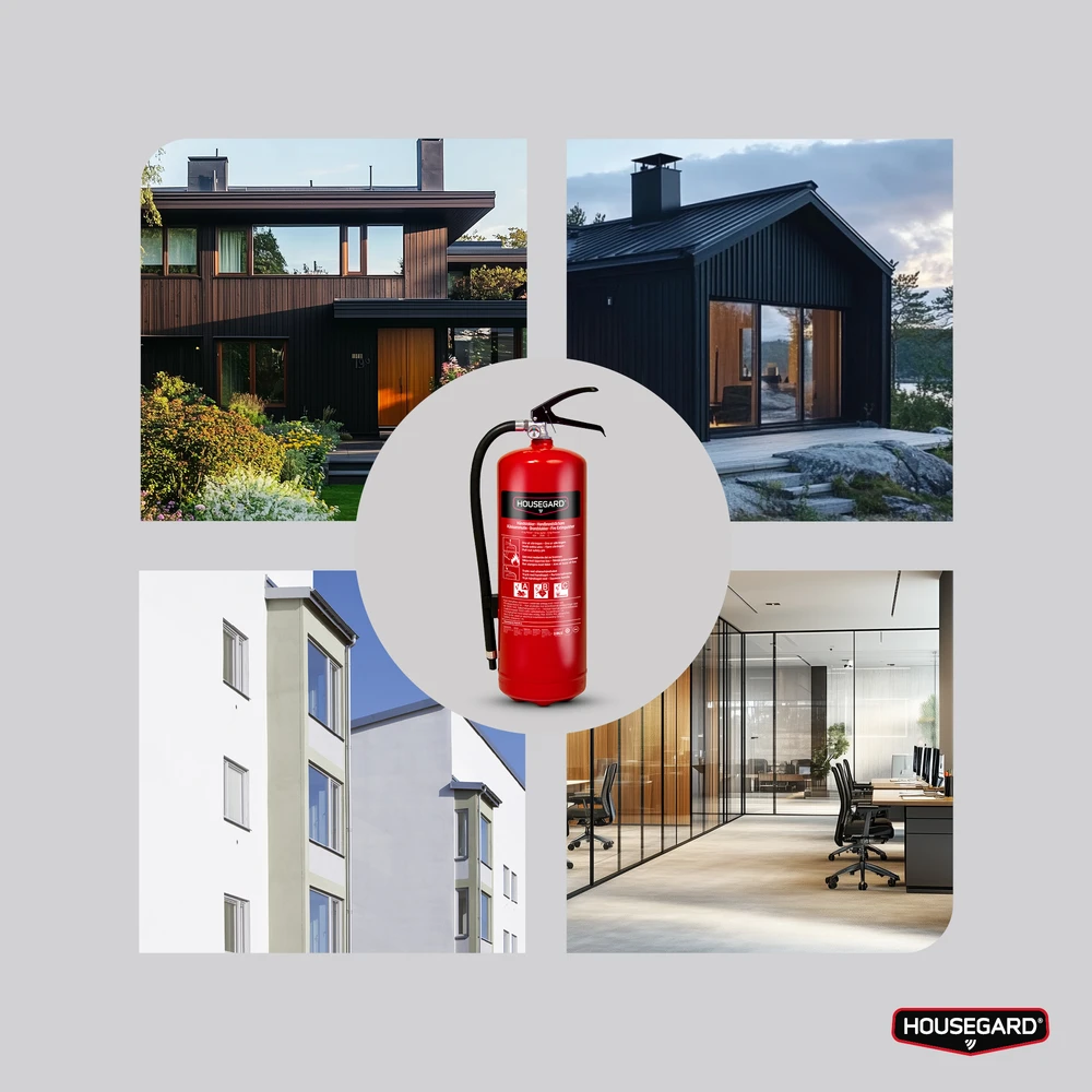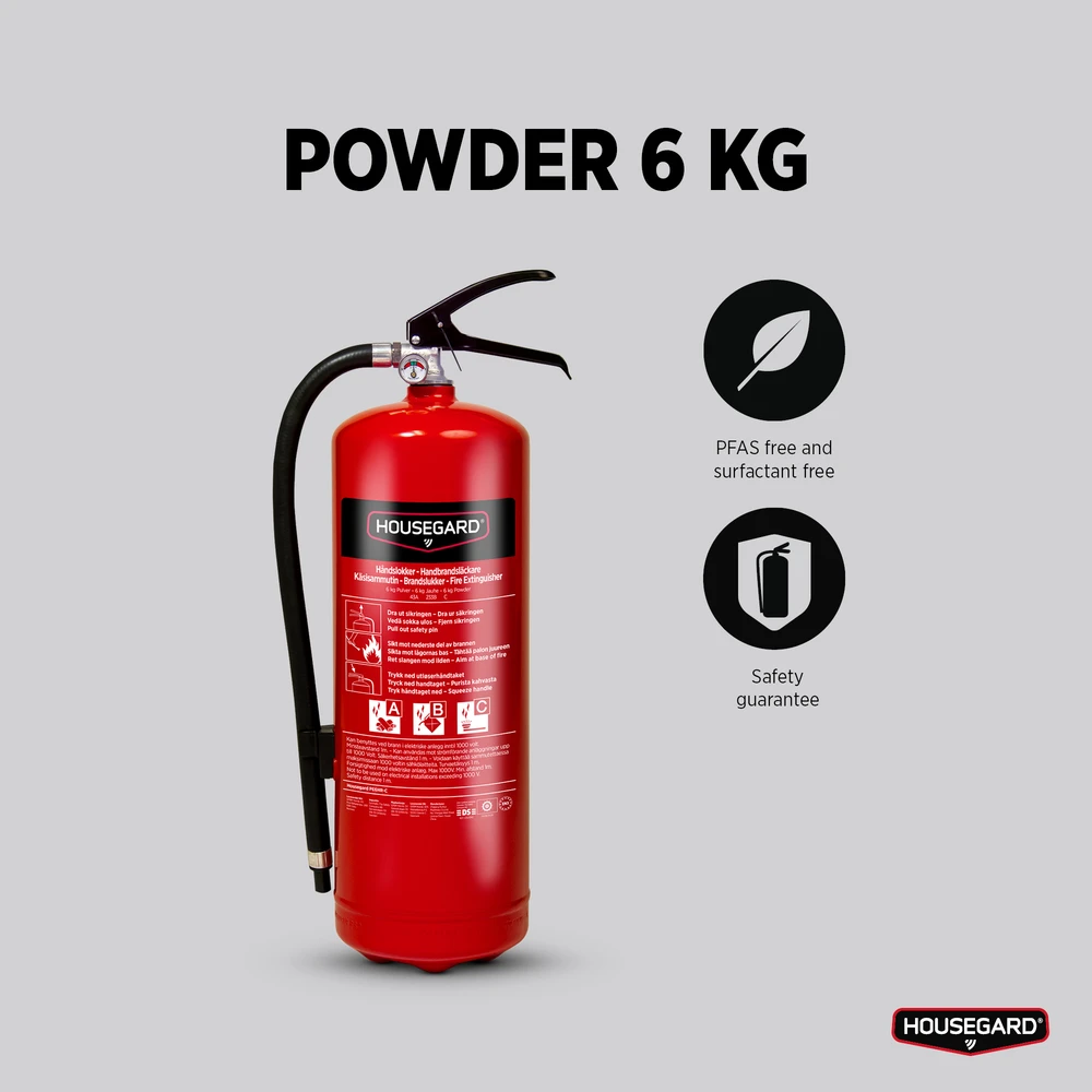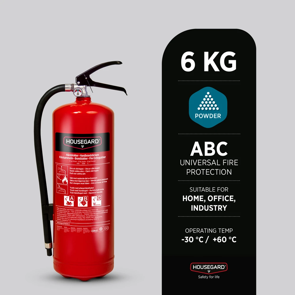Housegard 6 kg jauhesammutin 43A 233B C soveltuu kaikentyppisten palojen sammutukseen. Jauhesammutin on suositeltavin valinta omakotitalossa, huvilassa, huoneistossa ja loma-asunnossa, mutta sopii myös käytettäväksi teollisuudessa ja toimistoissa sekä kuljetus- ja rakennuskoneissa.