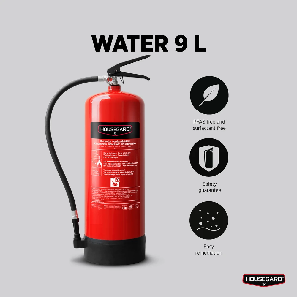 Housegard vesisammutin 9 L on puhdas ja ympäristöystävällinen sammutusaine ja paras valinta, kun halutaan korostaa ympäristöystävällistä sammuttamista. Tällaisia paikkoja voivat olla julkiset tilat, hotellit ja matkustajakodit, koulut, toimistot, kaupat, ostoskeskukset ja muut paikat, joissa puhdas ja ympäristöystävällinen sammutus on tärkeää.