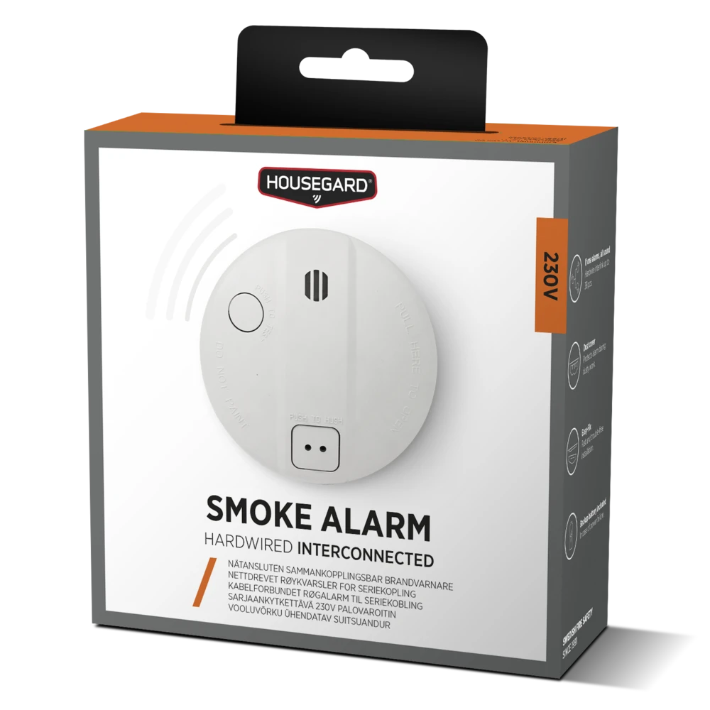 Sarjaan kytkettävä optinen palovaroitin, joka liitetään 230V verkkoon akkuvarmistuksella. Kiinteä yhteys jopa 38 laitteeseen. Hälyttää yksi, hälyttää kaikki – näin sinua varoitetaan missä tahansa, kun mahdollinen tulipalo syttyy.