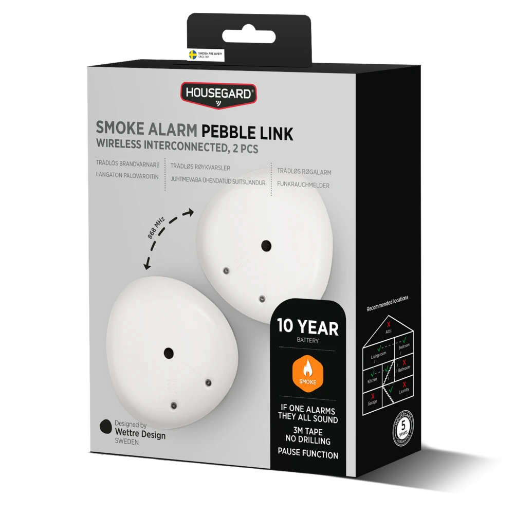 Housegard Pebble Link langaton palovaroitin, sis. 10-vuoden paristo, 2-pack
