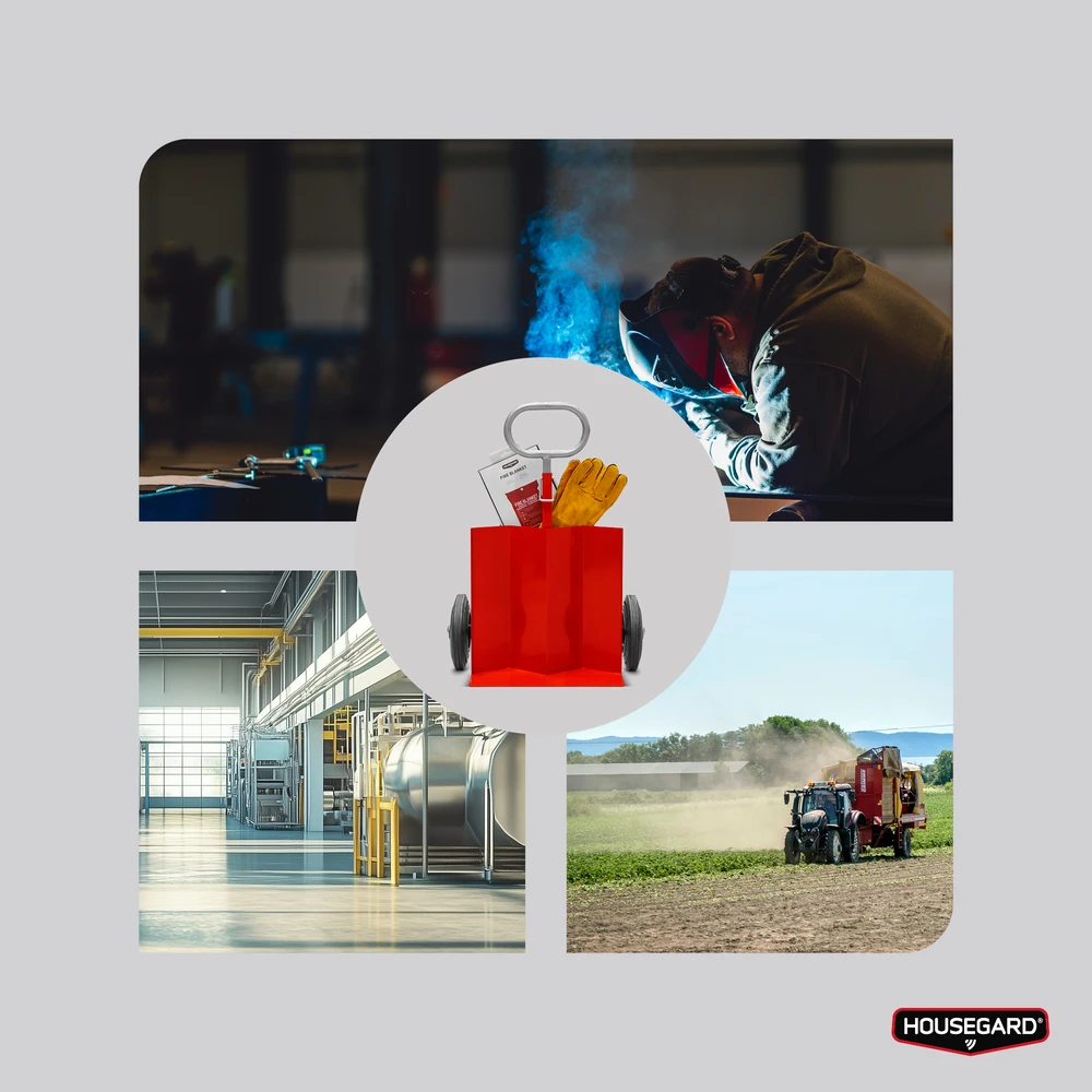 Housegardin tulityökärry sopii loistavasti henkilöille, jotka työskentelevät palovaarallisissa töissä. Käyttöalue: Tilapäiset työpisteet - Tulityö, työpajat/tehtaat, maatilat, autotalli.