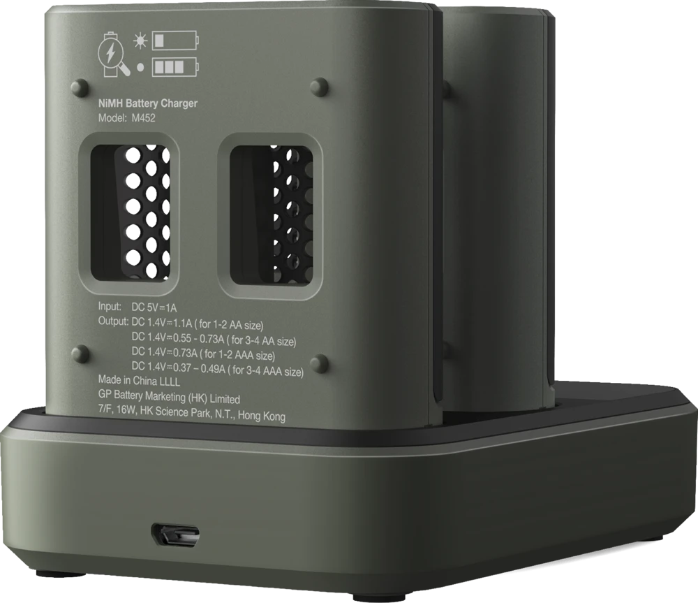 M452-laturilta kestää runsaat 2 tuntia kahden akun täyslataukseen tai vastaavasti 4 tuntia neljän akun (AA-paristot 2600mAh) täyslataukseen USB-liitännän kautta. Kaksiväriset LED-valot osoittavat lataustilan sekä sen, onko laturiin on asetettu kertakäyttöisiä paristoja tai kelvottomia akkuja. Toinen turvaominaisuus on automaattinen virrankatkaisuajastin ja täyden latauksen -dV-tunnistus, joka auttaa välttämään ylilatausta, ylijännitettä ja oikosulkua sekä estämään akun voittumista.