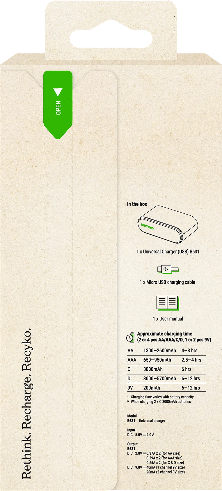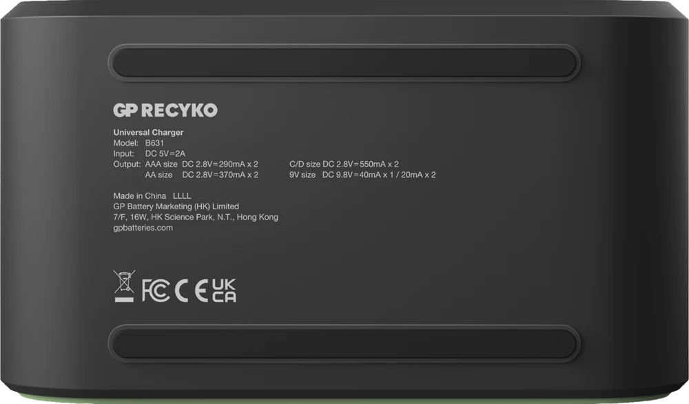 GP Recyko Universal laturi on moniin toiminnoiltaan vastaaviin kilpailijoihinsa verrattuna pienikokoinen. Lisäksi siinä on tyylikäs kansi, joka pitää akut suojassa pölyltä ja roskilta.