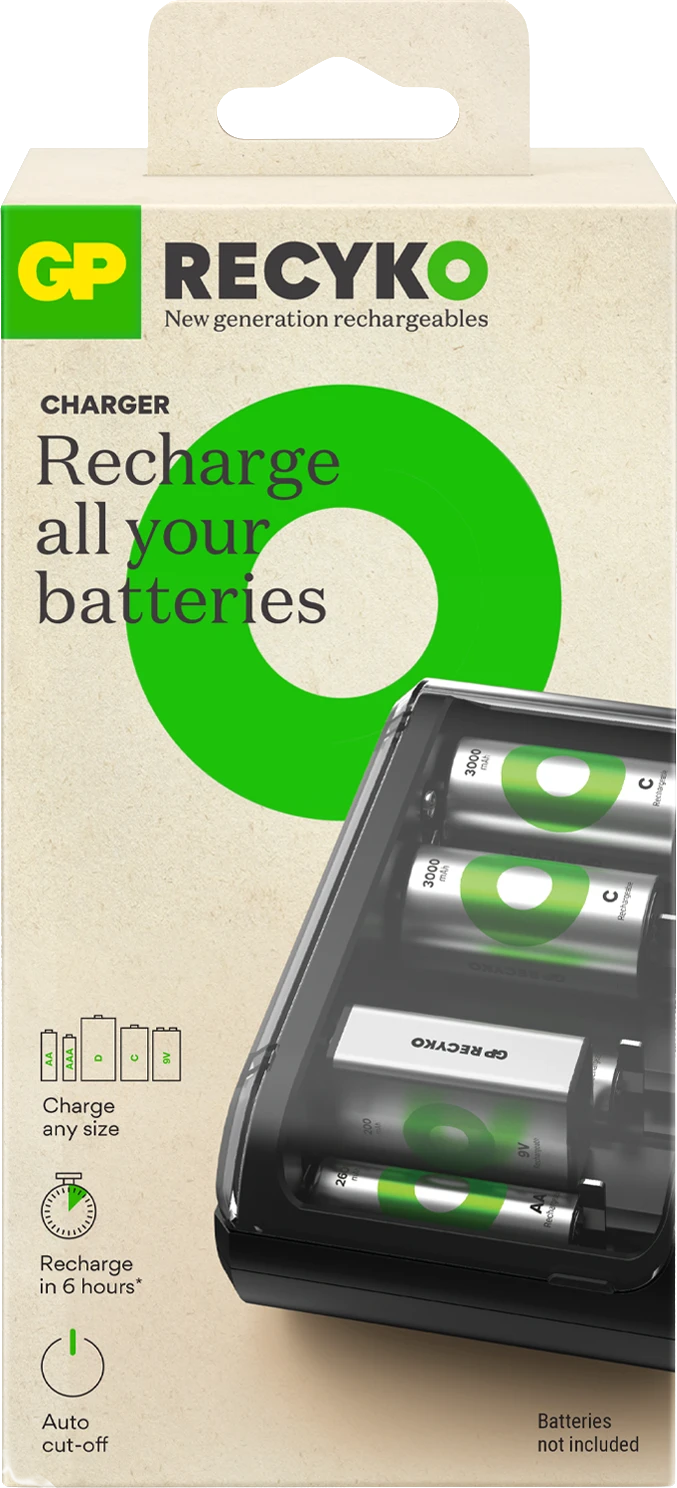 Innovatiivinen modulaarinen akku- ja laturijärjestelmä. GP Batteries murtaa jälleen käsitykset akkujen käytettävyydestä. Uudet GP Recyko -laturit ovat älykkäitä, kevyitä, kannettavia ja mikä tärkeintä - helppokäyttöisiä. Ne on myös suunniteltu älykkäästi toimimaan akkujen säilytyskotelona, kun niitä ei käytetä.
