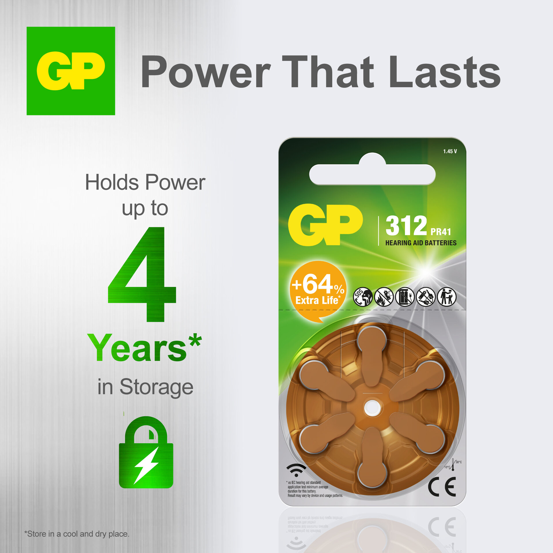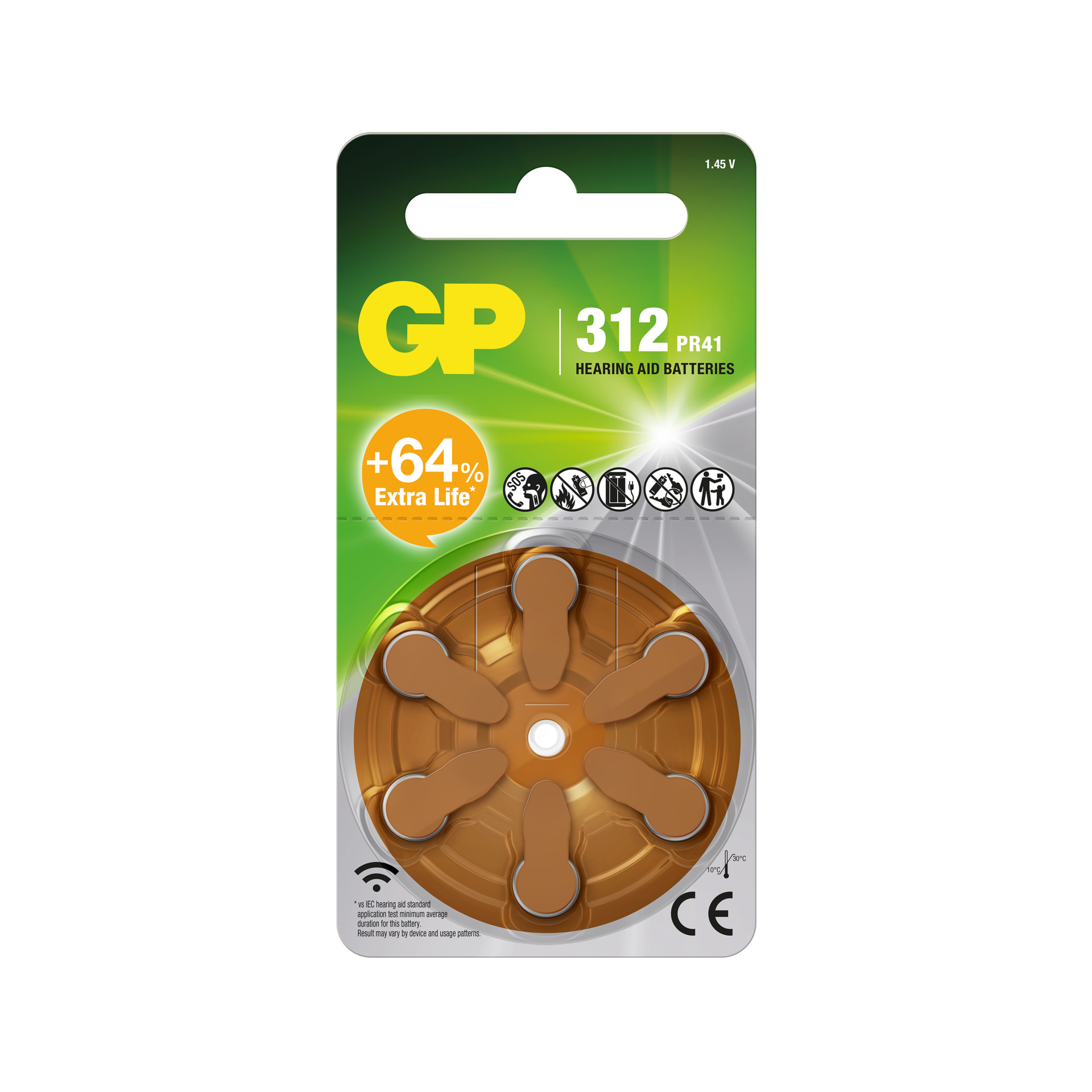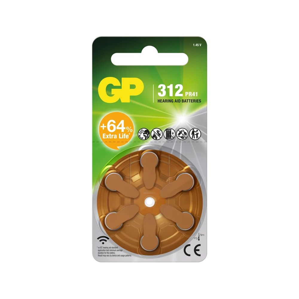 GP Kuulolaiteparisto ZA312/PR41 6-pack