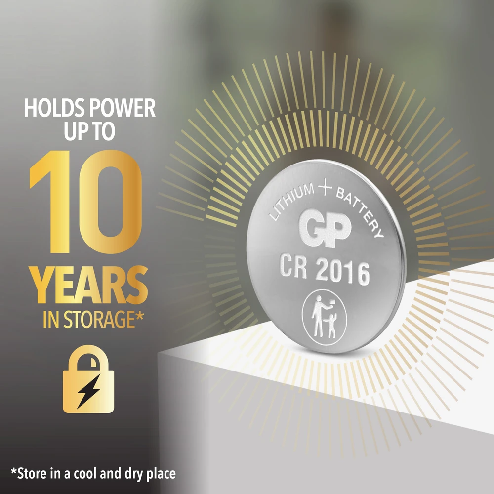 GP:n tehokkaat CR2016 litium-nappiparistot ovat energiatiiviitä ja voivat tuottaa 30 % enemmän virtaa* pienikokoisille erikoislaitteillesi, kuten autonavaimille, kaukosäätimille, älykelloille, verensokerimittareille, älykkäille kodin laitteille, IoT-laitteille sekä ovi- ja ikkuna-antureille. Niiden huomattavat virransäästöominaisuudet ja jopa 10 vuoden säilyvyys, kun ne säilytetään asianmukaisesti viileässä ja kuivassa paikassa, takaavat, että paristot eivät koskaan jää tyhjiksi. Se on tehty toimimaan myös äärimmäisissä olosuhteissa, ja se toimii luotettavasti -20 °C:sta +60 °C:een. Turvallisuus on etusijalla - näitä paristoja ei ole suunniteltu vain suojaamaan vempaimia tiiviillä rakenteella, vaan myös suojaamaan rakkaitasi harkitusti suunnitellulla lapsiturvallisella pakkauksella.