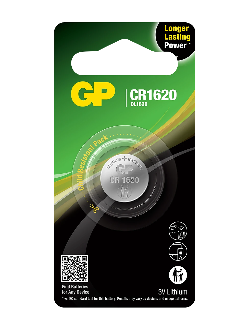 GP litium CR1620 nappiparistot tarjoavat pitkäkestoista tehoa ja energiaa, johon voit luottaa. Edistynyt tiivistystekniikka vähentää itsepurkautumista ja estää vuotoja. Paristo on suunniteltu vaativiin olosuhteisiin ja toimii luotettavasti -20 °C:sta +60 °C:een. Vuotamattomaksi kehitetty rakenne suojaa laitteesi ja lapsiturvallinen pakkaus lisää käyttöturvallisuutta.