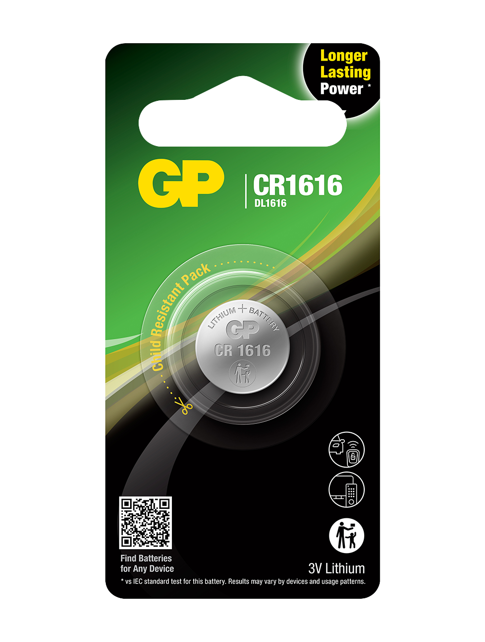 Lapsiturvallinen pakkaus – Tehon lisäksi GP panostaa turvallisuuteen. Paristot toimitetaan lapsiturvallisessa pakkauksessa, joka on suunniteltu pitämään nappiparistot poissa lasten ulottuvilta ja vähentämään vahingossa tapahtuvan nielemisen riskiä.