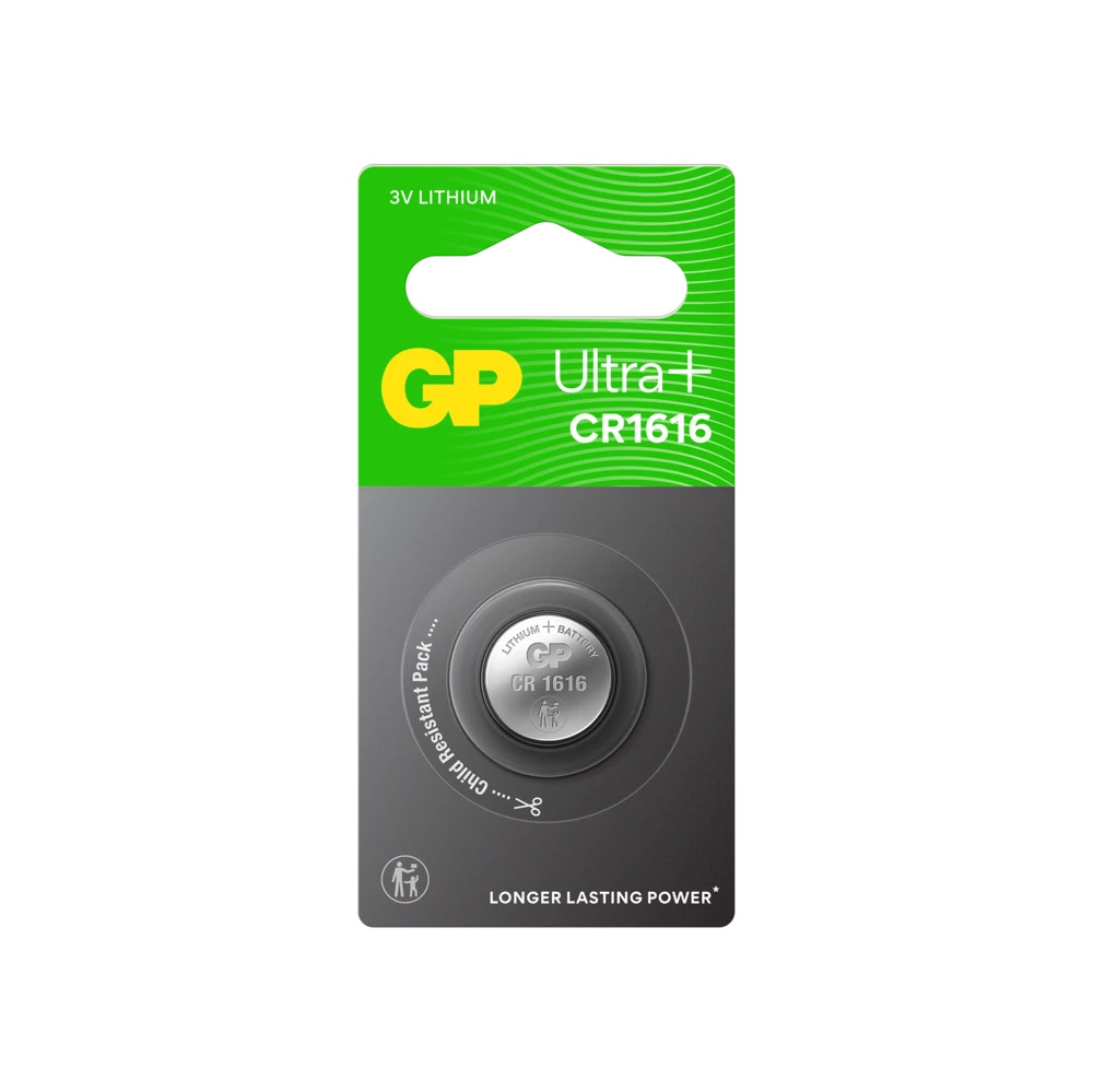 GP litium CR1616 nappiparistot tarjoavat pitkäkestoista tehoa ja energiaa, johon voit luottaa. Edistynyt tiivistystekniikka vähentää itsepurkautumista ja estää vuotoja. Paristo on suunniteltu vaativiin olosuhteisiin ja toimii luotettavasti -20 °C:sta +60 °C:een. Vuotamattomaksi kehitetty rakenne suojaa laitteesi ja lapsiturvallinen pakkaus lisää käyttöturvallisuutta.