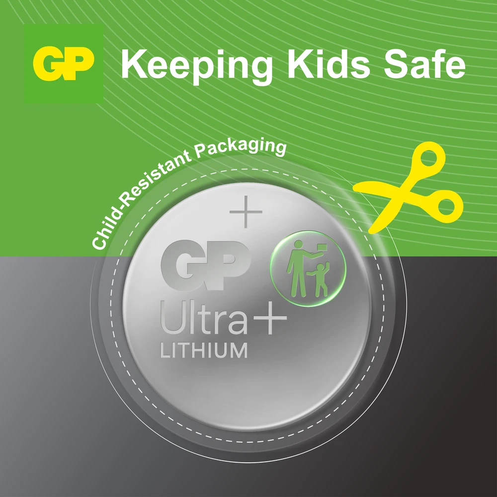 Lapsiturvallinen pakkaus – Pakkaus on suunniteltu pitämään nappiparistot poissa lasten ulottuvilta.