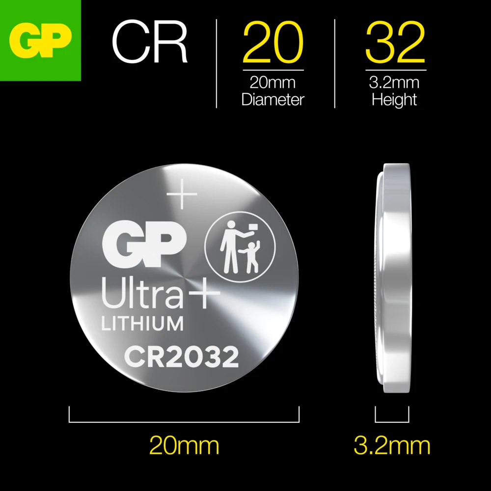 GP Ultra Plus litium CR2032 paristot on suunniteltu patentoidun Wavy Net -teknologian avulla tuottamaan vakaata energiaa ja jopa 80 % pidemmän käyttöiän.*