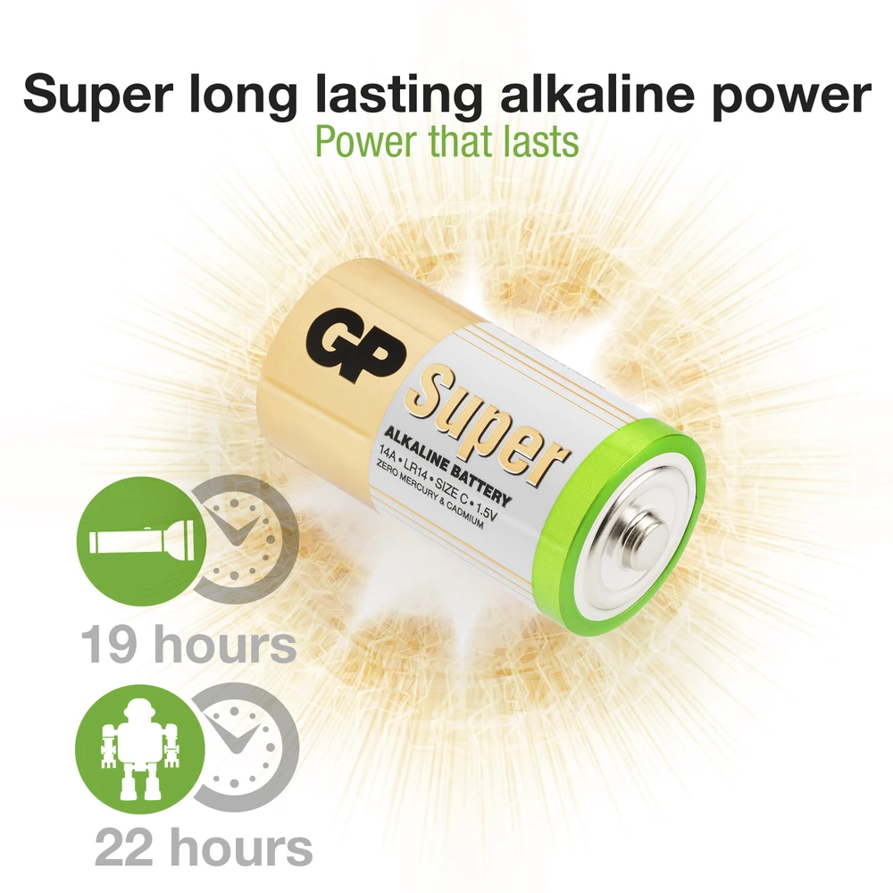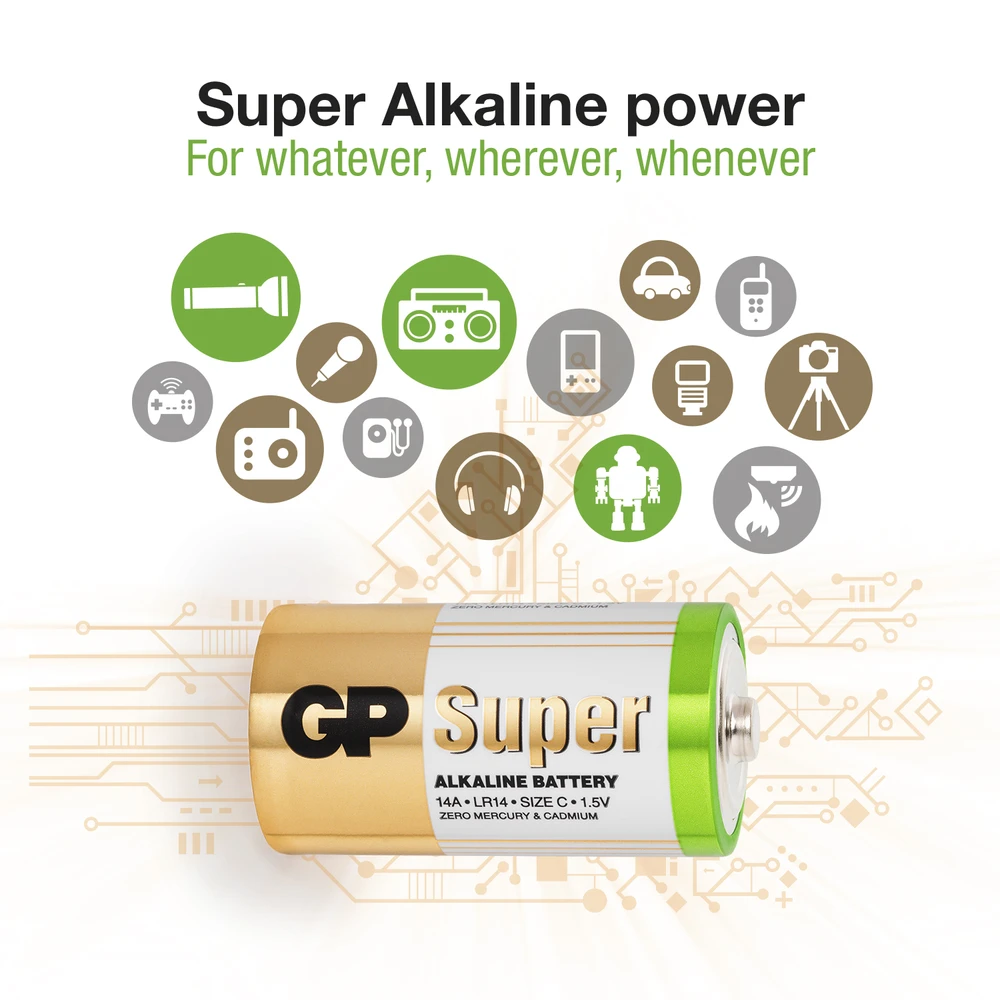 Alkaliparisto, joka on tarkoitettu lähes kaikkiin tuotteisiin, jotka vaativat keskisuurta virtamäärää esim. lelut, seinäkellot, kaukosäätimet ja taskulamput. GP Super Alkaline on kattava tuoteperhe, jonka tuotteita on saatavana sekä bulkki- että blisteripakkauksissa.