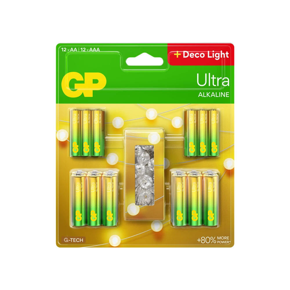 GP Ultra Alkaline 12xAA + 12xAAA paristot + Koristevalosarja