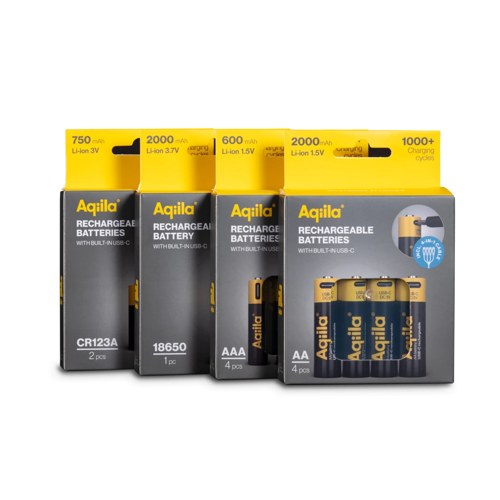 Aqiilan ladattavat USB-C akut tarjoavat luotettavaa virtaa kaikkialla. Erillistä laturia ei tarvita – liitä vain USB-C -kaapeli suoraan akkuun. Akut kestävät yli 1000 lataussykliä ja toimivat vakaasti -10 °C – +50 °C lämpötiloissa. Pikalataus varmistaa, ettet jää koskaan ilman virtaa. Oli kyseessä sitten otsalamppu, GPS, kamera tai radio, nämä akut pitävät laitteesi käynnissä niin töissä kuin vapaa-aikana.