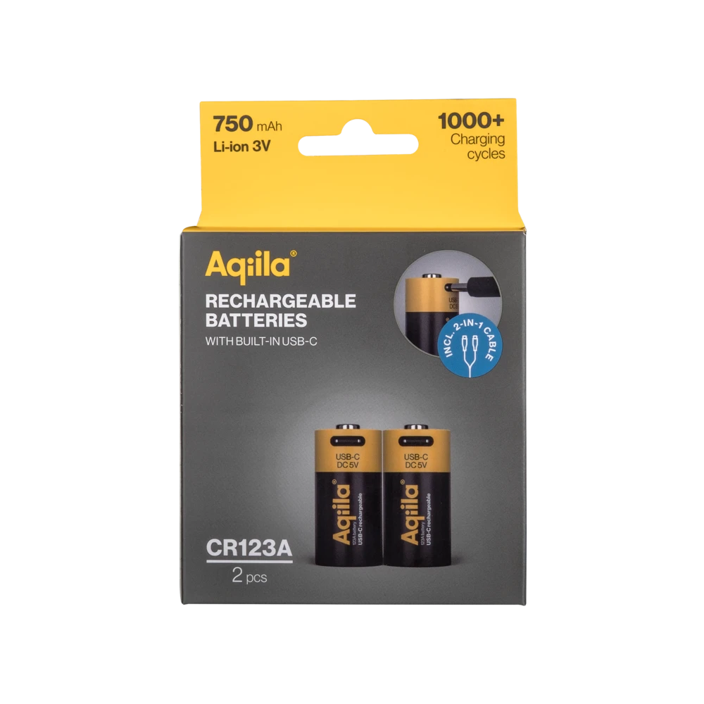 Aqiila Ladattava USB-C Lithium akku CR123A 2-pack